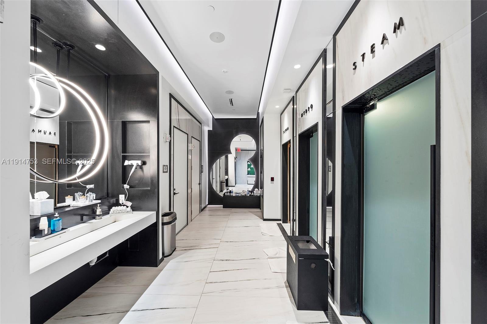 The most highly sought-after and rarely available unit type at The Estates at Acqualina, coined The World's Finest Residences! Located on the coveted south corner with endless views of the turquoise Atlantic and Miami's glittering downtown skyline, the 45th floor is unique with vaulted 12' ceilings lending to the residence's already-grand feel. Generous outdoor space featuring more than 1100sf of balconies with an oceanfront outdoor sauna. Impressively spacious layout with oversized great room ideal for families and for entertaining, separate family room, 4 bedrooms (convertible 5th), chef's kitchen with dual La Cornue gas ranges and other top-of-the-line appliances by Sub-Zero and Miele, luxurious/upgraded stone finishes including white onyx in all bathrooms with Dornbracht fixtures and Toto washlets. Enjoy the convenience of complete smart-home automation for lighting, audio/visual, climate and window shades. Bar-none, Miami's most luxurious oceanfront enclave with five-star world-class services and amenities that include Rolls Royce House Cars, five restaurants featuring Estiatorio Avra, Il Mulino and KeUh, three pools complete with FlowRider and waterslide, daily breakfast, cinema, skating rink, bowling alleys, F1 and golf simulators, basketball court, soccer field, and dedicated concierges.