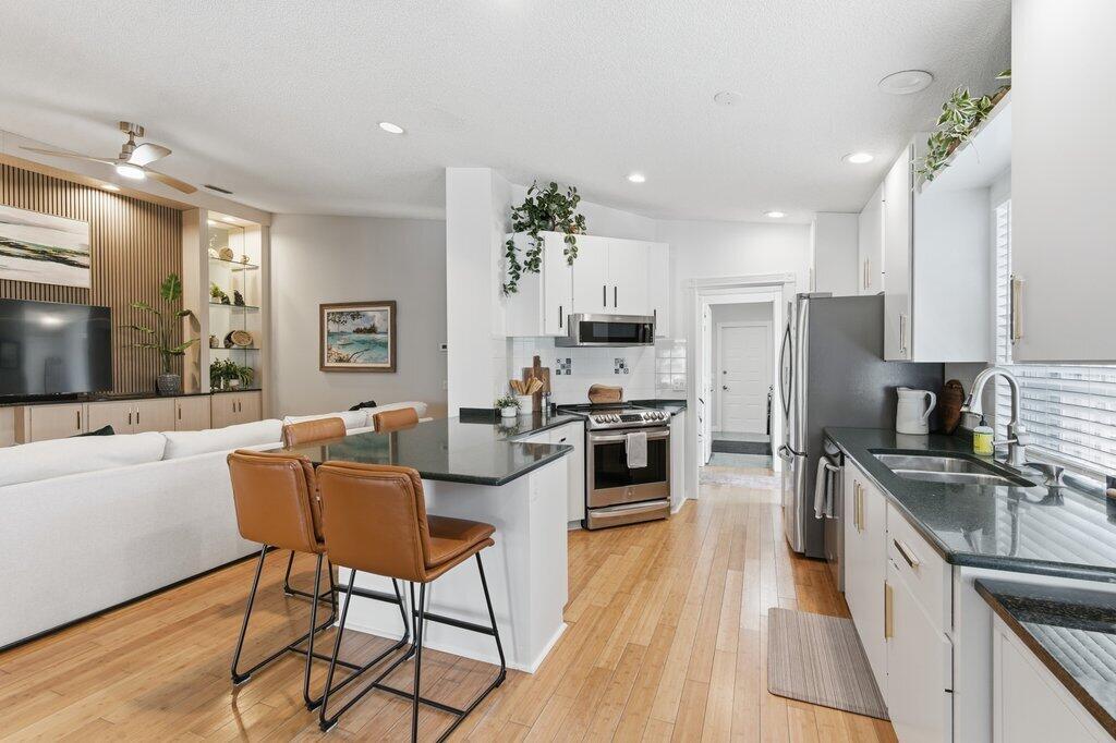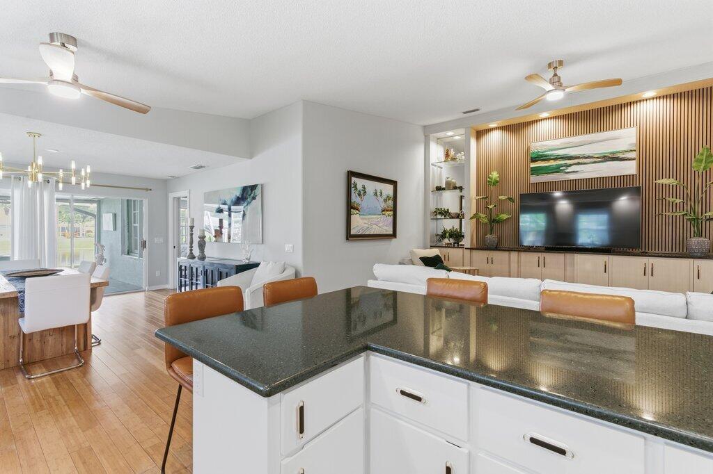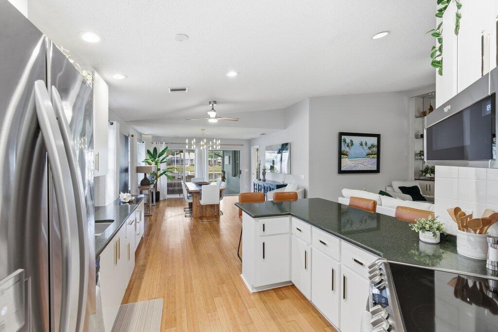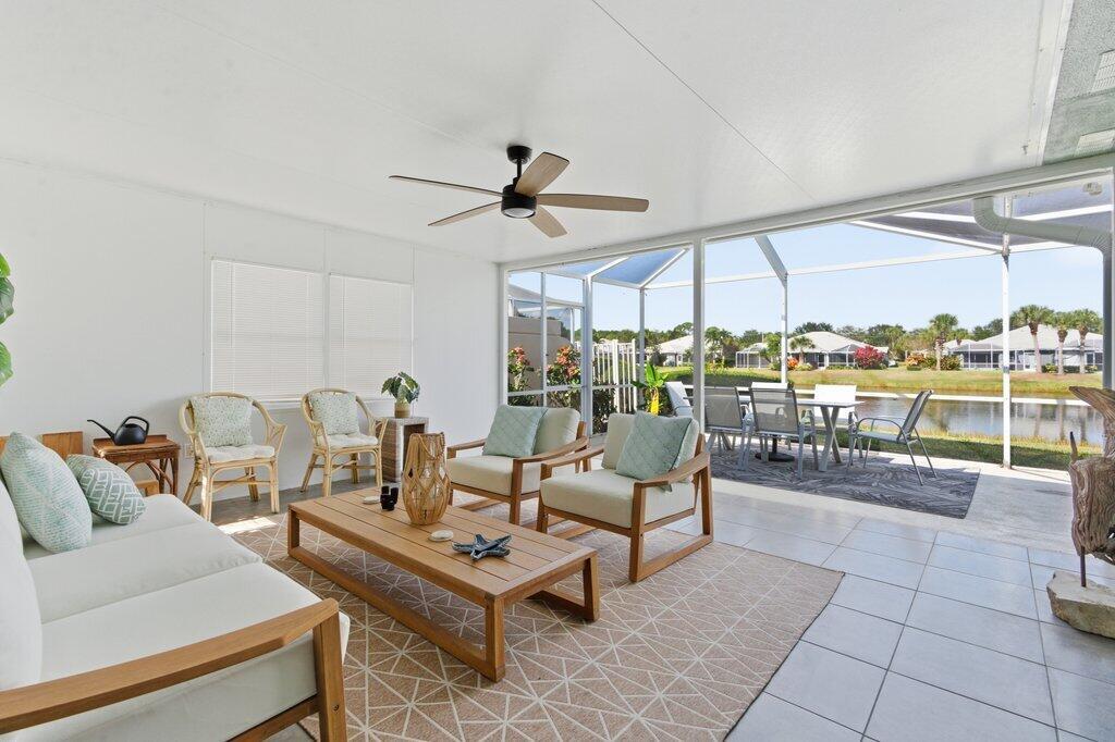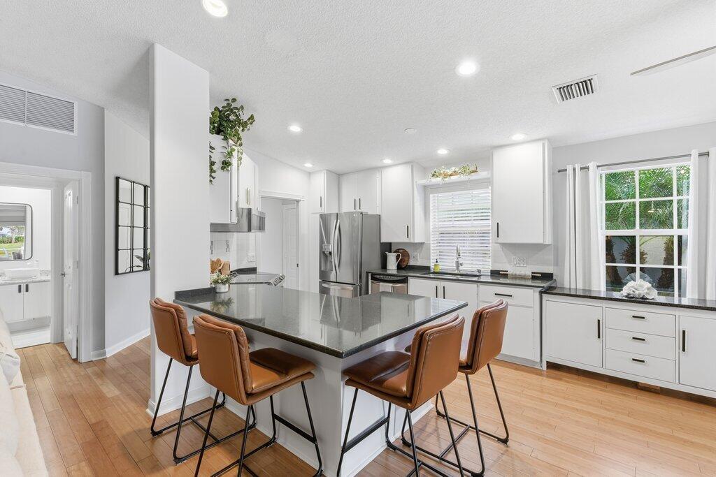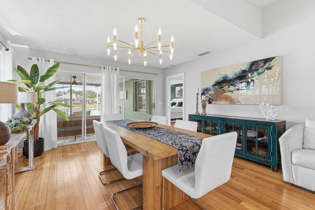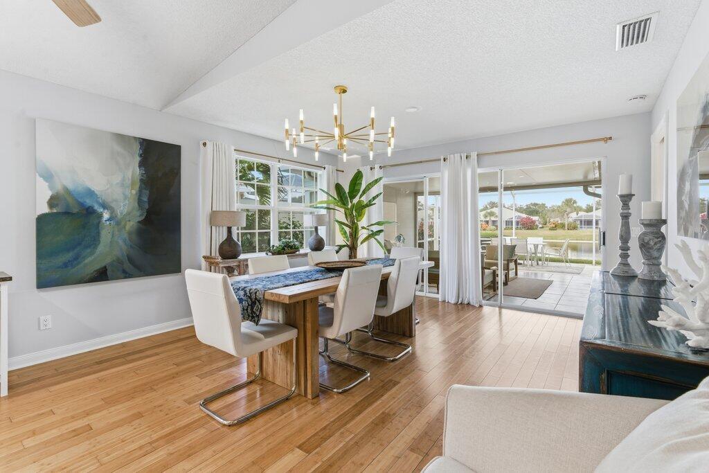 Step inside this beautifully updated 2-bedroom, 2-bath waterfront villa! An open-concept layout, this home welcomes you with bright, airy living spaces & a seamless flow. Enjoy stunning water views from outdoor patio, offering a peaceful backdrop morning to night. The updated kitchen features modern finishes, ample storage, & a spacious countertop that opens to the living and dining areas. The split-bedroom floor plan provides added privacy, with a spacious primary suite complete with an en-suite bath. A second bedroom & full bath make the perfect guest retreat or home office. Additional upgraded wood flooring, contemporary lighting, all within a desirable active community. Whether you're looking for a full-time residence or a relaxing seasonal retreat, this home checks all the boxes!