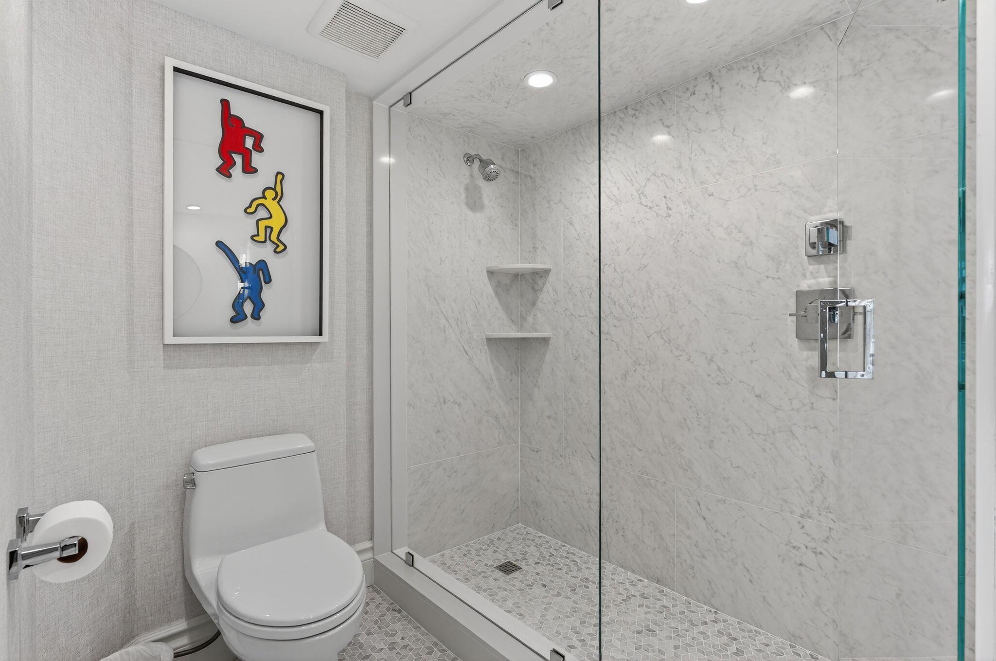 This 3-bedroom, 3-bath masterpiece is the epitome of oceanfront luxury. Upon entering you're welcomed by large format porcelain flooring that leads to the open living spaces w/ forever ocean views. The contemporary kitchen is a chef's dream, equipped w/ high-end Wolf, Miele & KitchenAid appliances; sleek white cabinetry & counters, oversized island & plentiful storage. The pass-through bar includes a fabulous U-Line wine cooler, perfect for seaside entertaining. The oversized primary suite features custom wall trimmings, designer lighting & panoramic city views. The primary bath includes a soaking tub, glass enclosed shower & gorgeous double vanities. 2 guest suites, boast stunning ensuite baths, custom lighting & expansive city vistas.