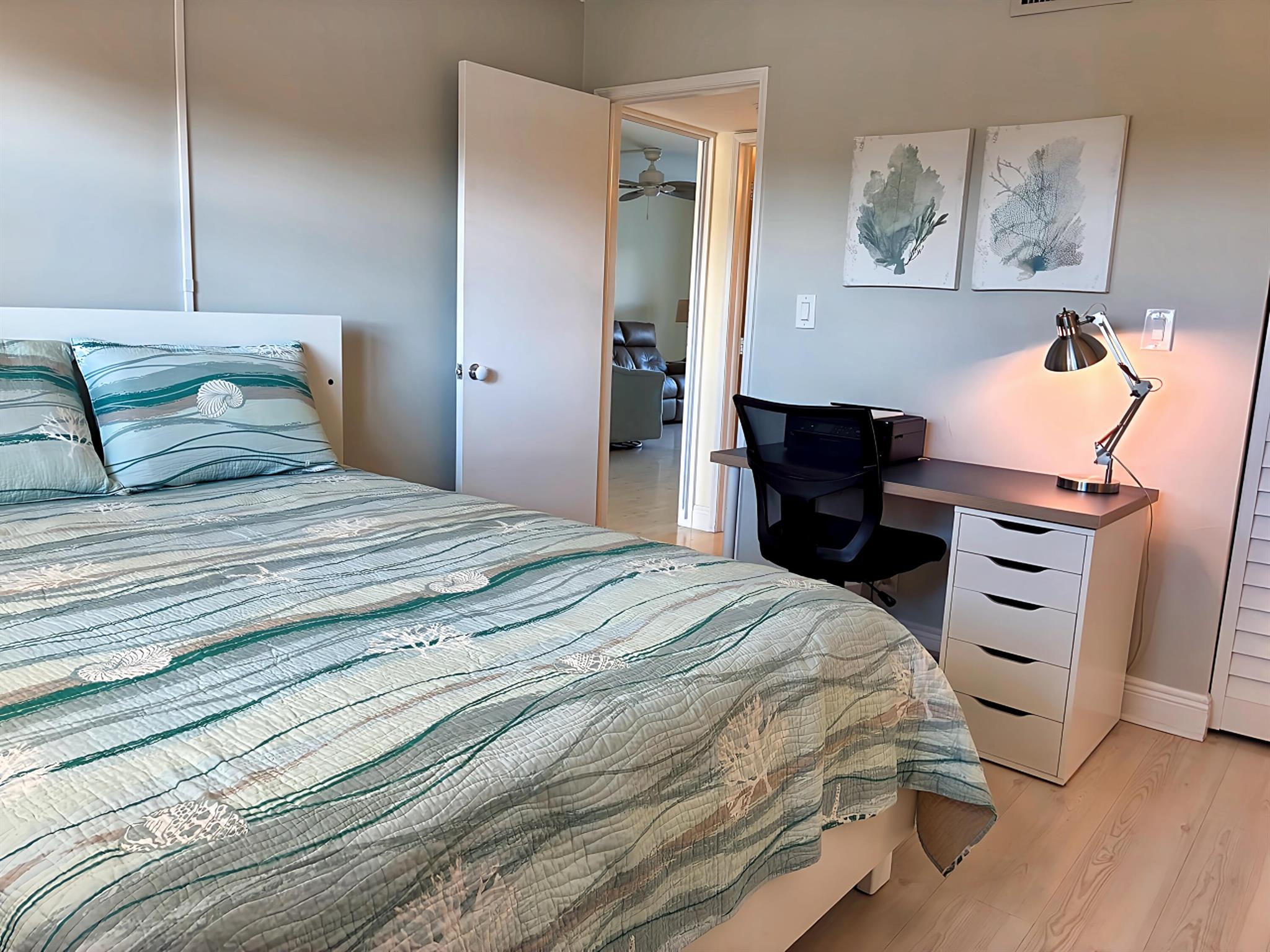 Just steps from the beach with your own direct access! This turnkey, fully furnished corner unit on the top floor is the perfect spot to relax. Kick back on the screened porch overlooking the pool, with impact windows and accordion shutters keeping things comfortable and secure. The kitchen and bathrooms have been nicely updated, and you get two parking spots. The community has been refreshed with a new roof, fresh paint, new blacktop, and a resurfaced pool. Pets allowed up to 25 lbs. It's a great place to enjoy easy, laid-back beach living!