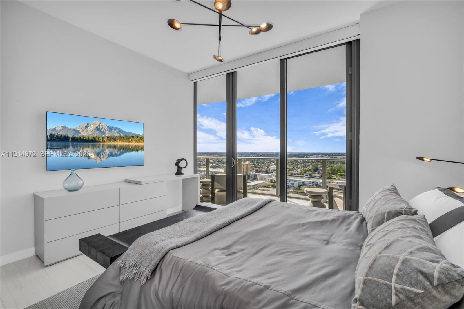 Absolutely stunning southeast corner flow through Middle PH Residence at Solemar with breathtaking 180 degree views spanning the ocean, city skyline and Intracoastal. This spectacular skyhome has been beautifully designed and finished by Interiors by Steven G and features an incredible flexible floorplan that can easily live as a four bedroom. Sold completely furnished with custom built ins and designer furnishings, this residence is truly turnkey. Move in today and enjoy a magazine worthy home without the wait of months for design and build out. A rare opportunity to own a fully finished, thoughtfully designed residence with unforgettable views in one of Pompano Beach’s most desirable oceanfront buildings. Enjoy world-class amenities including oceanfront and sunset pools, beach service, spectacular spa and fitness center, movie room, wine lounge, concierge, and valet. A rare fully furnished oceanfront home on the sand with wine locker and assigned parking.