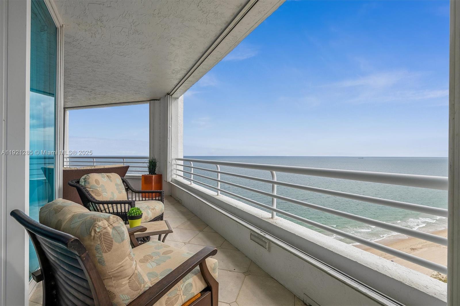 Experience luxury coastal living at the Cristelle, Lauderdale-by-the-Sea’s premier oceanfront residence. This desirable SE Corner condo offers sweeping, unobstructed ocean views from every room through floor-to-ceiling impact glass. A rare 800 sq ft wraparound balcony seamlessly connects the living spaces, creating an effortless indoor-outdoor lifestyle with panoramic Atlantic vistas and refreshing sea breezes. Featuring 3,200 sq ft under air, this elegant home includes a walk-in laundry room, dual A/C zones, two assigned garage spaces, and an additional air-conditioned storage room. The upgraded kitchen and bathrooms feature modern finishes, adding both style and sophistication to this coastal retreat. Cristelle is a boutique building with just 80 residences and only four units per floor, offering 24-hour concierge/doorman service and resort-style amenities: a recently updated heated oceanfront pool with spa, fitness center, saunas, tennis & racquetball courts, bike storage, and one of the largest private dog parks on the beach. The 25-year structural, electrical, and fire safety certifications are complete. A private boardwalk with tiki hut leads to one of the widest, most tranquil beaches in the area. Perfectly located near Sea Ranch Plaza, dining, and the LBTS downtown district, or enjoy the convenience of the local Circuit Shuttle. Two pets welcome. Welcome to the Cristelle—where luxury living meets unparalleled coastal beauty.