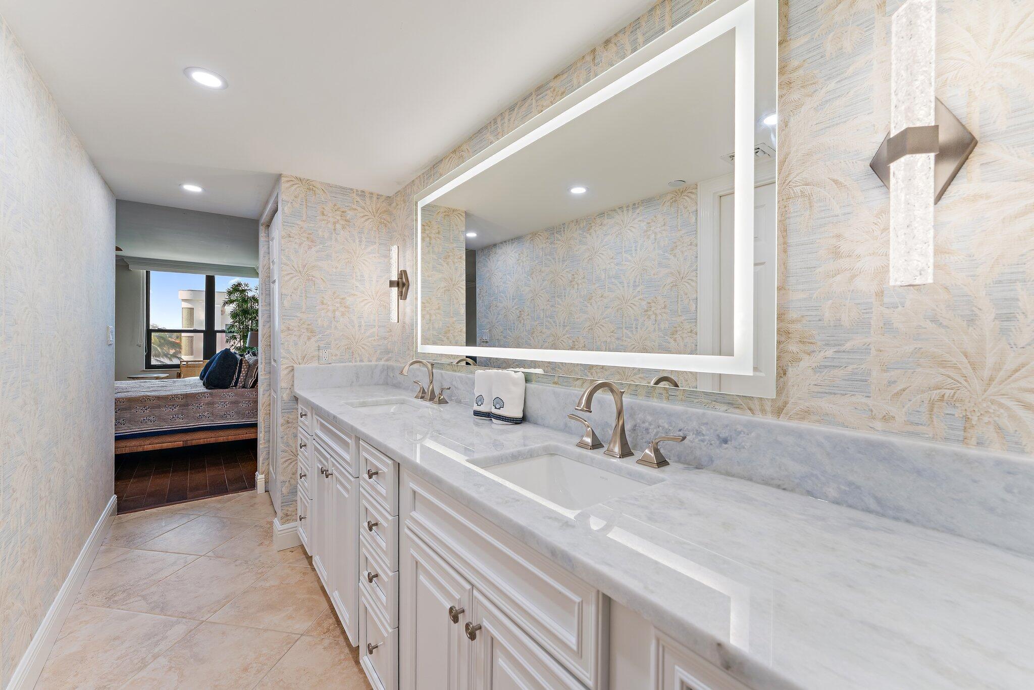Absolutely stunning Intracoastal facing residence in the highly sought-after Seawatch on Jupiter Island, offering 2,358 square feet of elegant coastal luxury. From nearly every corner of this exceptional home, sweeping blue water views create a seamless connection to the Intracoastal, with stunning vistas flowing effortlessly throughout the entire residence. Whether you are waking up in the primary suite, preparing meals in the kitchen, or relaxing in the den, the beauty of the waterway is ever present. These breathtaking views are a constant companion and truly at the heart of the Intracoastal living experience.Designed with purpose and sophistication, the bright and open floor plan features two ensuite primary suites including a gracious junior primary, a stylish half bath, and