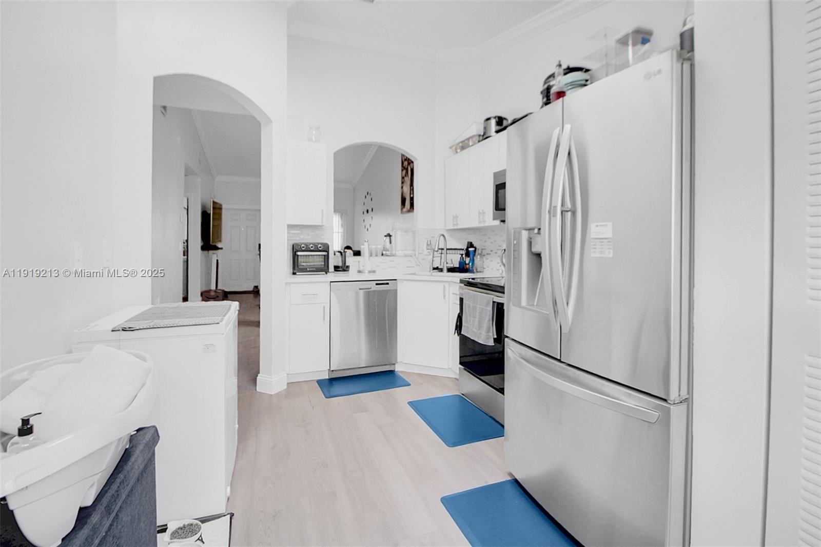 Beautiful and spacious 2-bedroom, 2-bath condo located in the desirable gated community of Pembroke Pines. Located on the second floor, it features vaulted ceilings making it an open concept. This home features an open floor plan with laminated flooring throughout. The kitchen is equipped with a dishwasher, microwave, refrigerator, and a washer/dryer. The community offers resort-style amenities and is conveniently located near top-rated schools, shopping, dining, and major highways