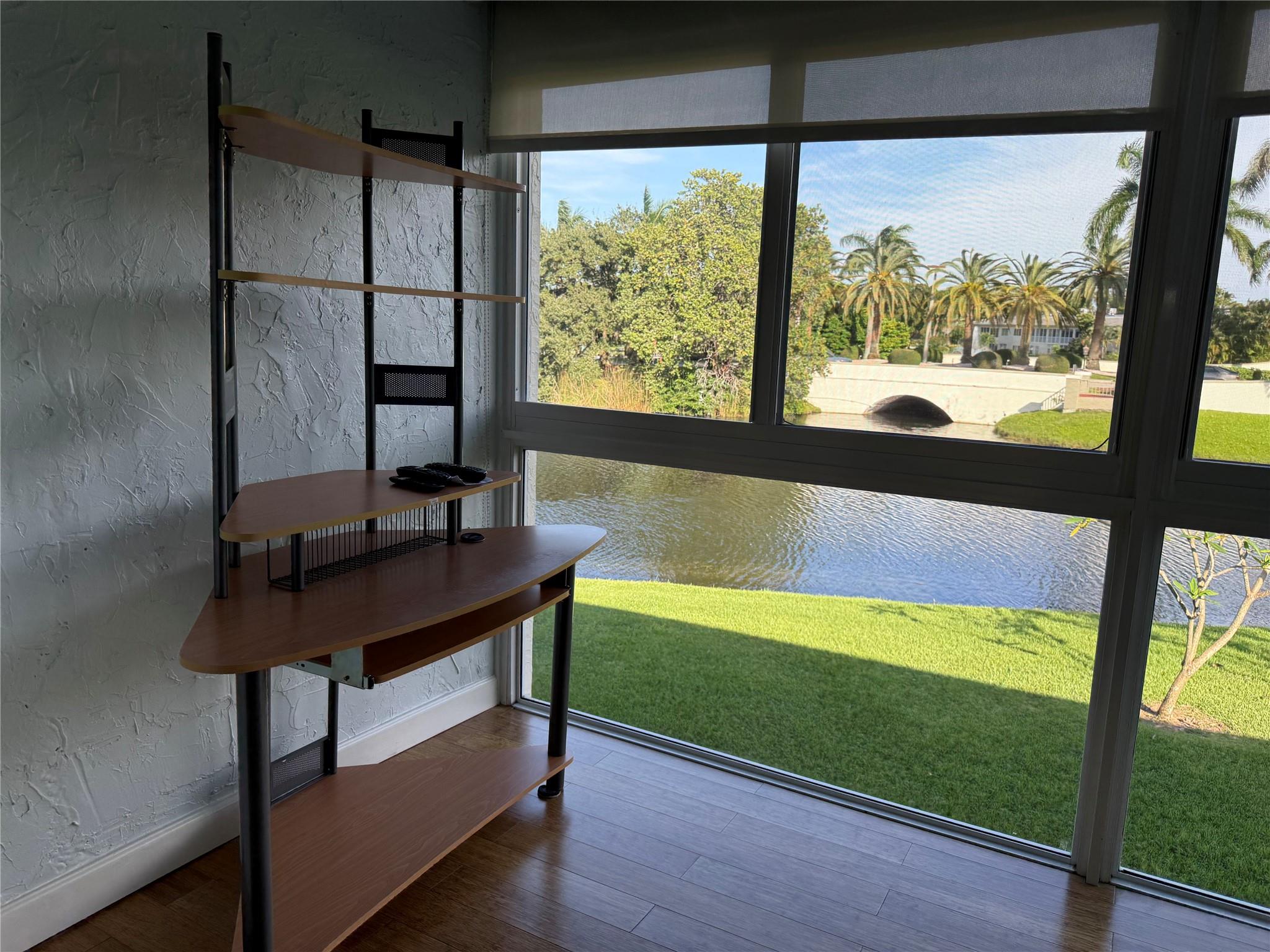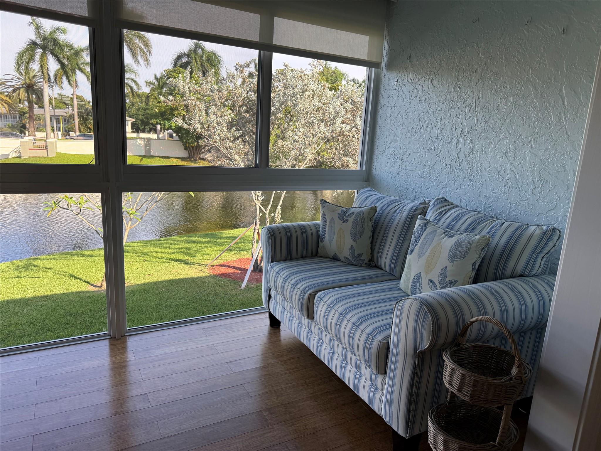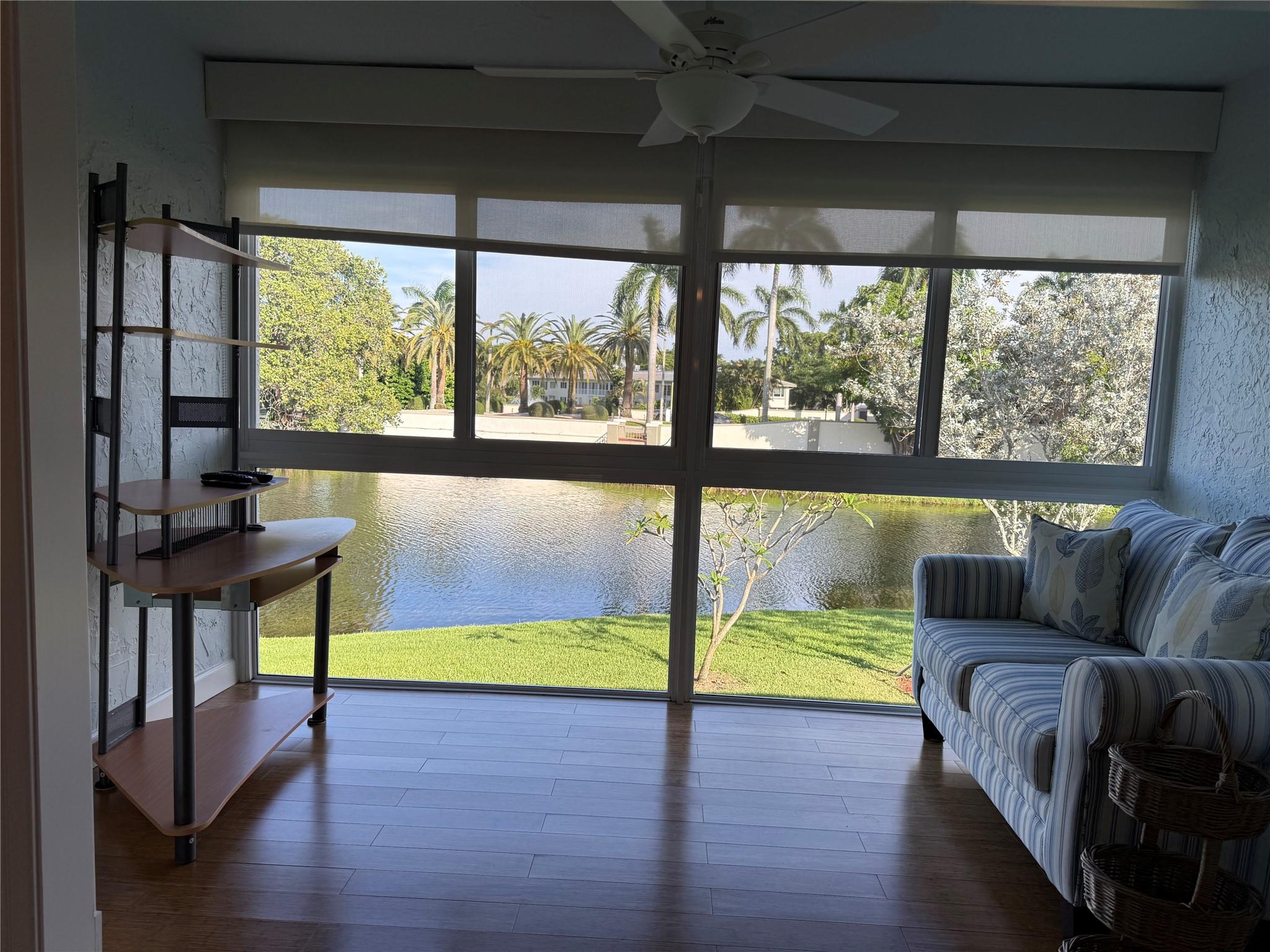 CORNER This property features all high-impact windows and a glass-enclosed patio that opens to the living area. Surrounded by water on every side, the patio faces east. The interior has been remodeled, with no carpet; laminate /vinyl flooring throughout. The kitchen and living room boast granite countertops and recessed lighting (hi-hats), SS Appliances, while all windows are fitted with plantation shutters. Be sure to see all the photos, then come see it for yourself!