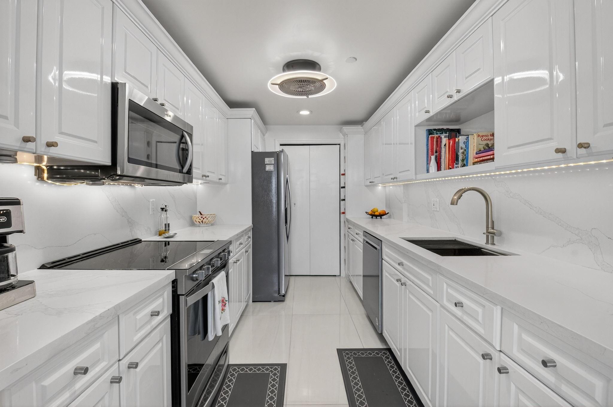 Wake up to breathtaking Intracoastal views from this upgraded 2-bedroom, 2-bath condo in Boca Ratons exclusive, gated Porta Bella East. Enjoy your expansive 35' balcony when the summer sun rises over the ocean. Stay active with tennis, pickleball, or a workout in the updated gym, then unwind by the resort-style pool. Set sail from your private dock or reach the beach in just 10 minutes. In the evening, relax in your spacious living room as mega yachts drift by, then explore world-class dining, and entertainment at Mizner Park or Delray Beach. Upgrades include renovated master and guest baths, newer AC and appliances, elegant porcelain tile, and quartz finishes. Your dream waterfront lifestyle awaits! $14MM Porta Bella upgrade completed and 2025 assessment paid!