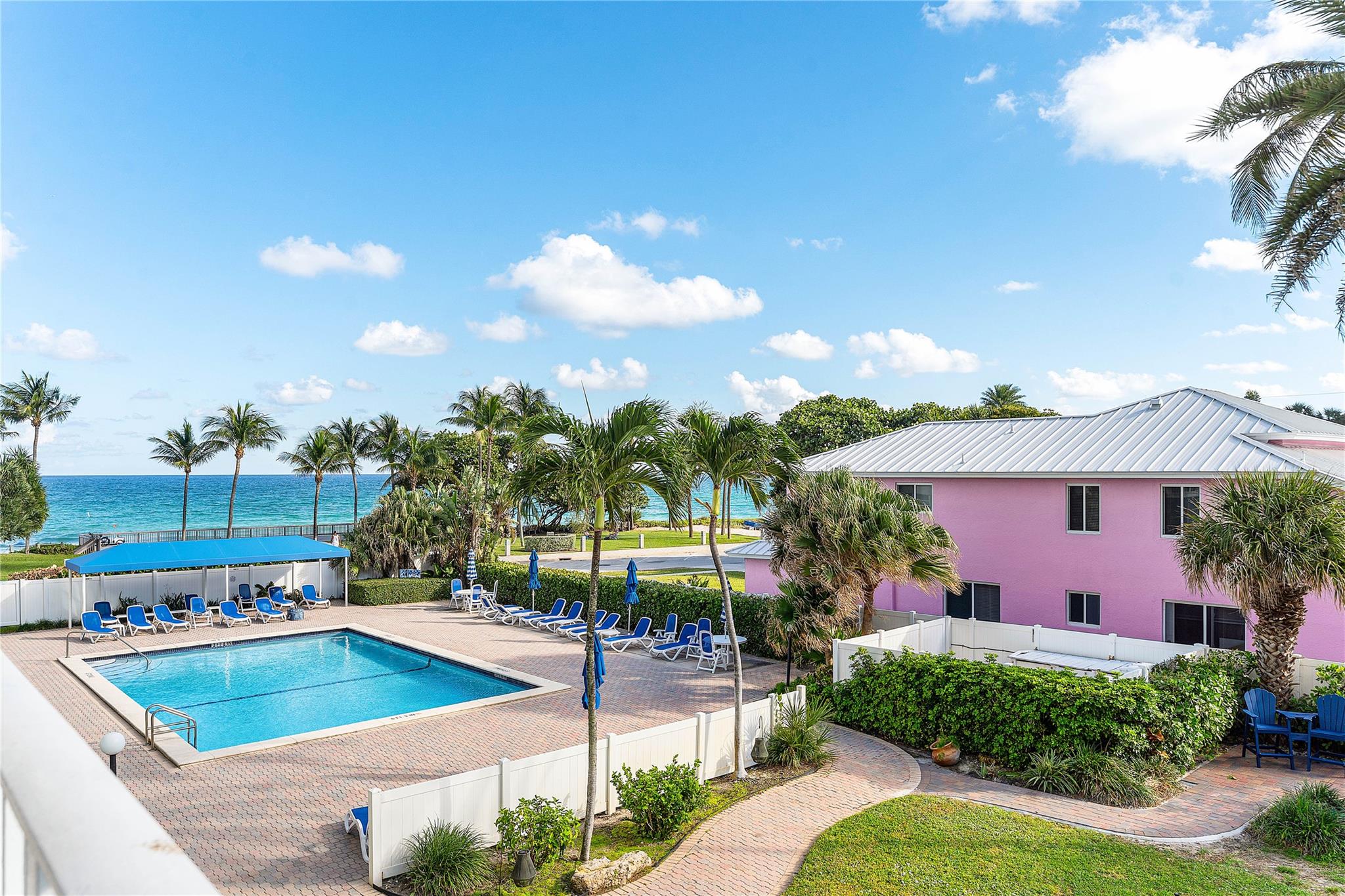 Enjoy your own private beach at this true slice of paradise! This beautifully updated condo in Ocean Harbor offers impact windows, tile flooring, private laundry, a large floorplan & a spacious balcony with serene pool, ocean, & garden views. Ocean Harbor is one of the most sought-after buildings in Deerfield Beach, featuring a private deeded beach with gated entry, a large tiki hut with 2 Grills, Blackstone, picnic and bar-style seating, a heated pool, full gym, recreation room, billiard room, and your own private storage unit. Located in an unbeatable oceanfront setting, you're just a short walk along the ocean to Downtown Deerfield Beach with shops, restaurants, bars & the world-famous International Fishing Pier. There is also a pickleball court & a playground right across the street!