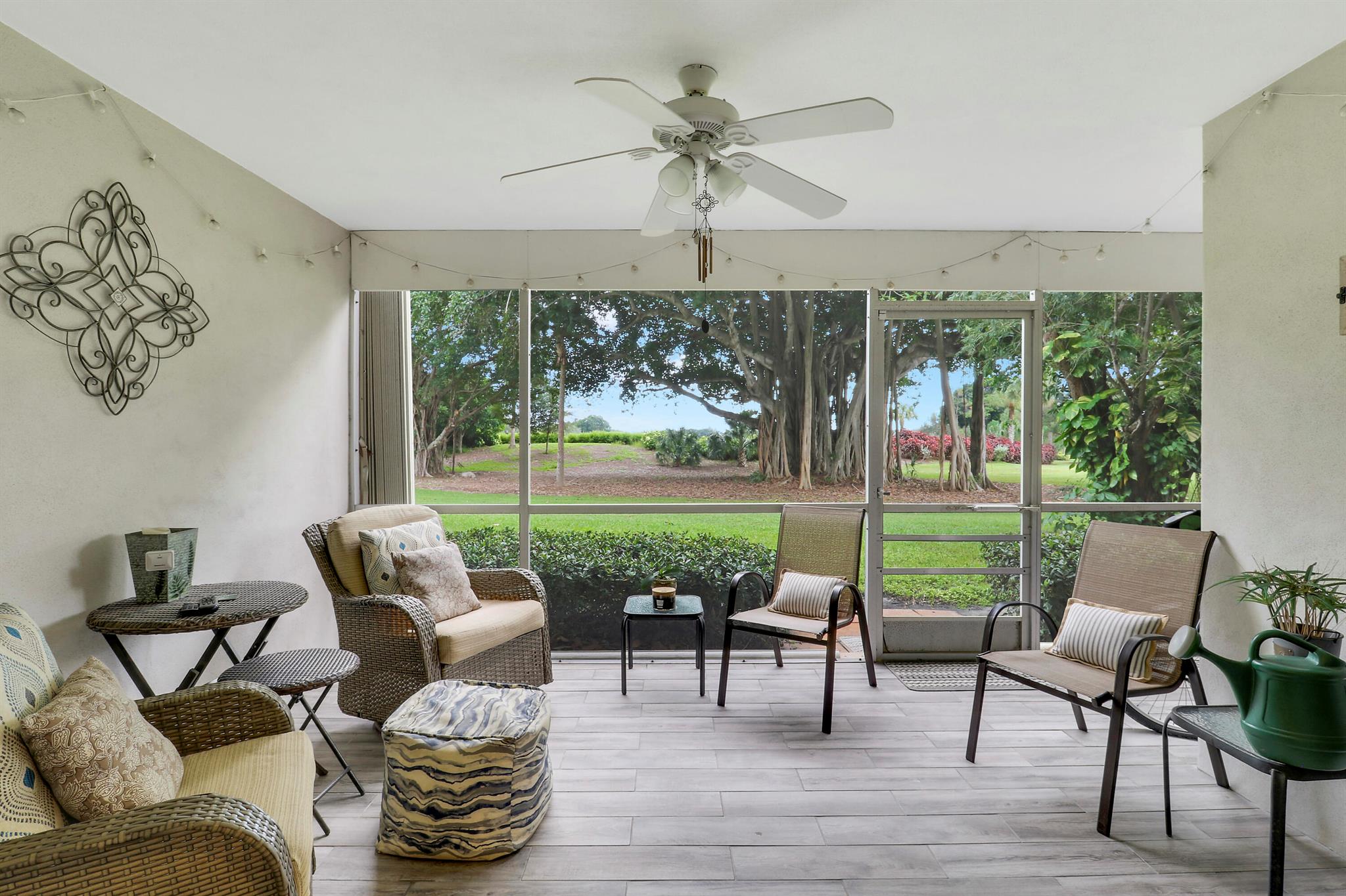 Spacious and stylish, this 2 bed/2 bath first-floor condo is perfectly situated in the heart of the PGA Blvd corridor in Palm Beach Gardens. Tastefully updated in 2019, it features upgraded countertops, stainless steel appliances, and newer AC and water heater. Set in an intimate building of just 20 residences with a newer roof (2020), the property offers privacy and tranquility. Enjoy serene views from your screened patio, surrounded by majestic Banyan trees and adjacent to the picturesque finishing holes of Ballen Isles East golf course. Step outside and you're minutes from Whole Foods, Fresh Market, Trader Joe's, and a wide array of top restaurants and shopping. Condos in such a prime location and price point are rare--don't miss this exceptional opportunity