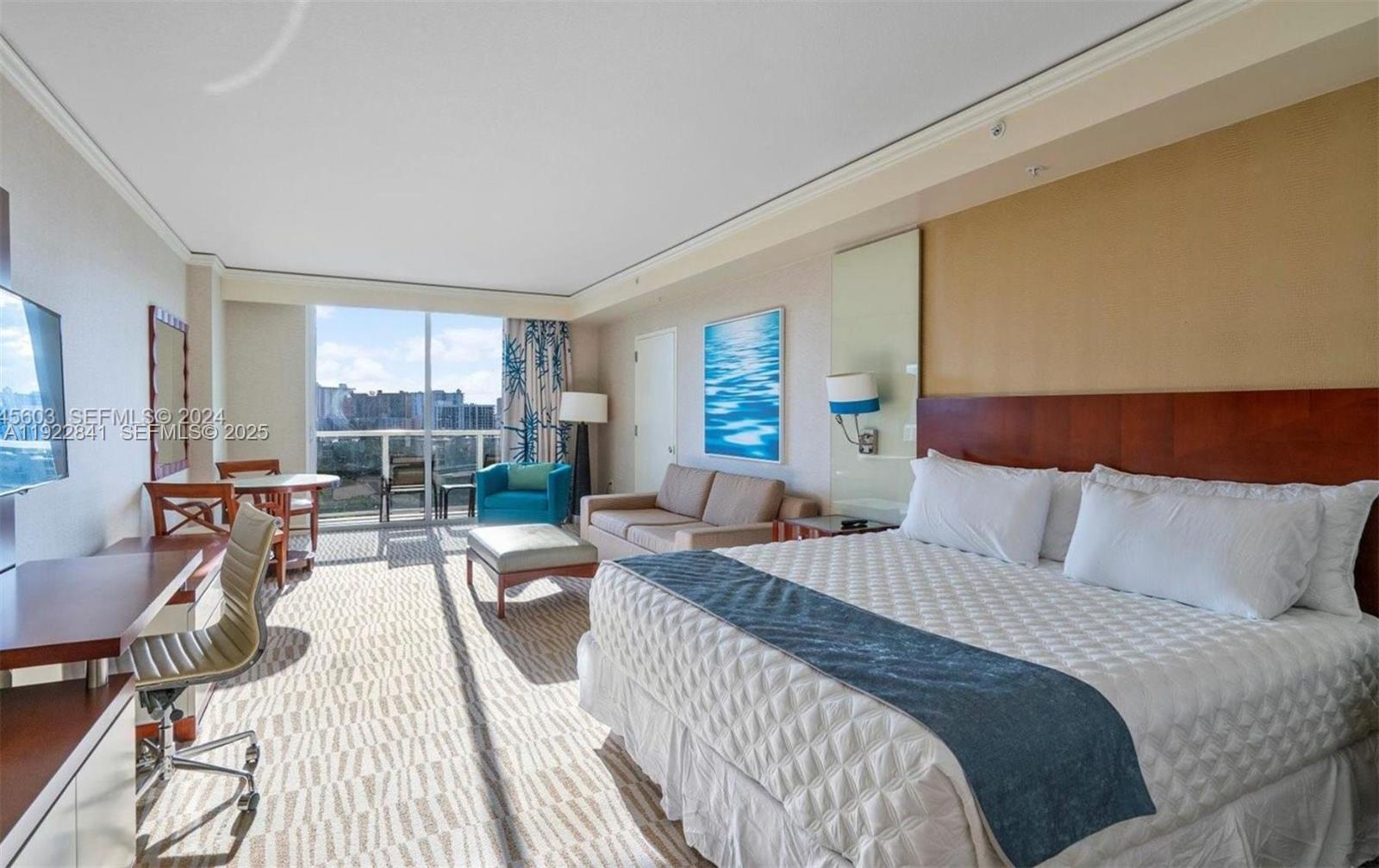 Beautiful Studio at Trump International Beach Resort — Sunny Isles Beach. Discover the perfect blend of lifestyle, comfort, and income potential, daily rentals allowed, you can rent it privately or through the hotel program. This condo-hotel unit offers a spacious layout with a King bed, dining area, convenient washer and dryer, and a well-equipped kitchenette, all maintained to hotel standards. Enjoy bright Collins Avenue and city views from your suite, creating the ideal retreat for personal stays or rental income.