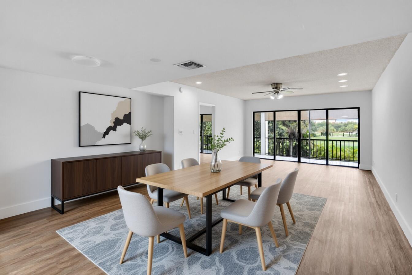 Welcome to 1701 Presidential Way, a beautifully renovated 2-bedroom, 2-bathroom condo in the highly desirable Lands of the President community in West Palm Beach. This spacious residence offers stunning golf course views from the oversized screened patio and features brand-new premium vinyl wood plank flooring, fresh interior paint, and upgraded ductwork. The open layout includes a generous primary bedroom with peaceful sunset views and a convenient in-unit washer and dryer. Recent updates include A/C in 2018 and a new roof in 2017. The well-maintained community offers a secure, gated entrance and a host of amenities, with the monthly HOA covering cable, internet, water, pest control, and access to community pools.