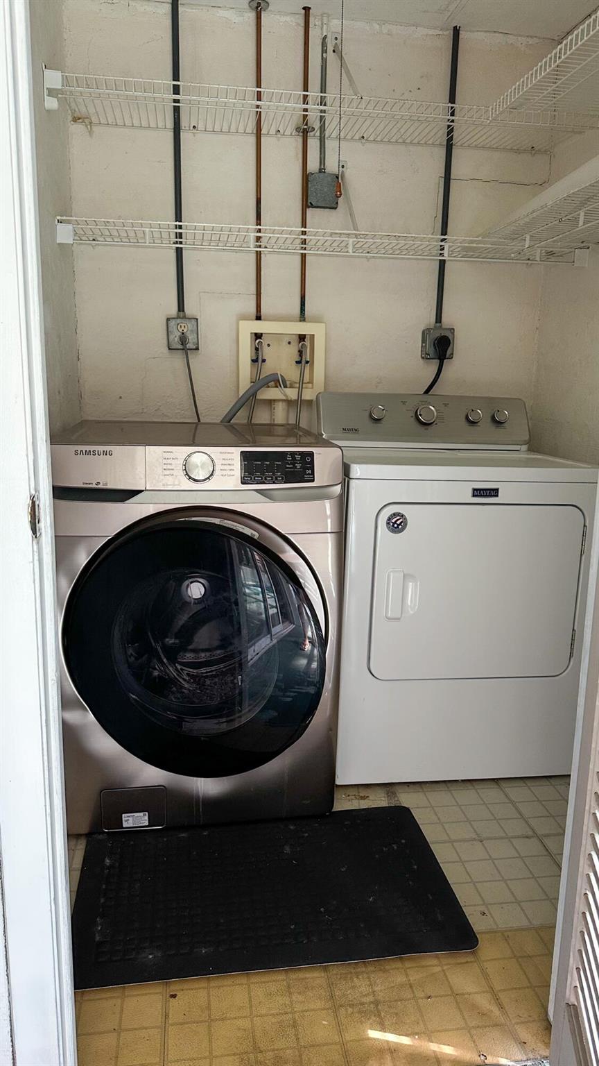 Vista St. Lucie is a beautiful, and active, 55+ community in a park-like setting, surrounded by nature. This second-floor unit has garden and wooded views. The A/C and water heater are newer, 2023. Roof 2023. Washer and dryer are located in the unit, just off the patio. The bathroom vanities and mirrors were just replaced last year. The monthly HOA fee includes, water, cable, Internet, trash, building insurance, maintenance of the grounds and common areas, management that is onsite, and the many recreational amenities. These amenities include tennis, pickleball, billiards, a gym, pool, shuffleboard, library, arts and crafts room, and clubhouse with kitchen. Convenient to shopping, dining, civic center, and beaches
