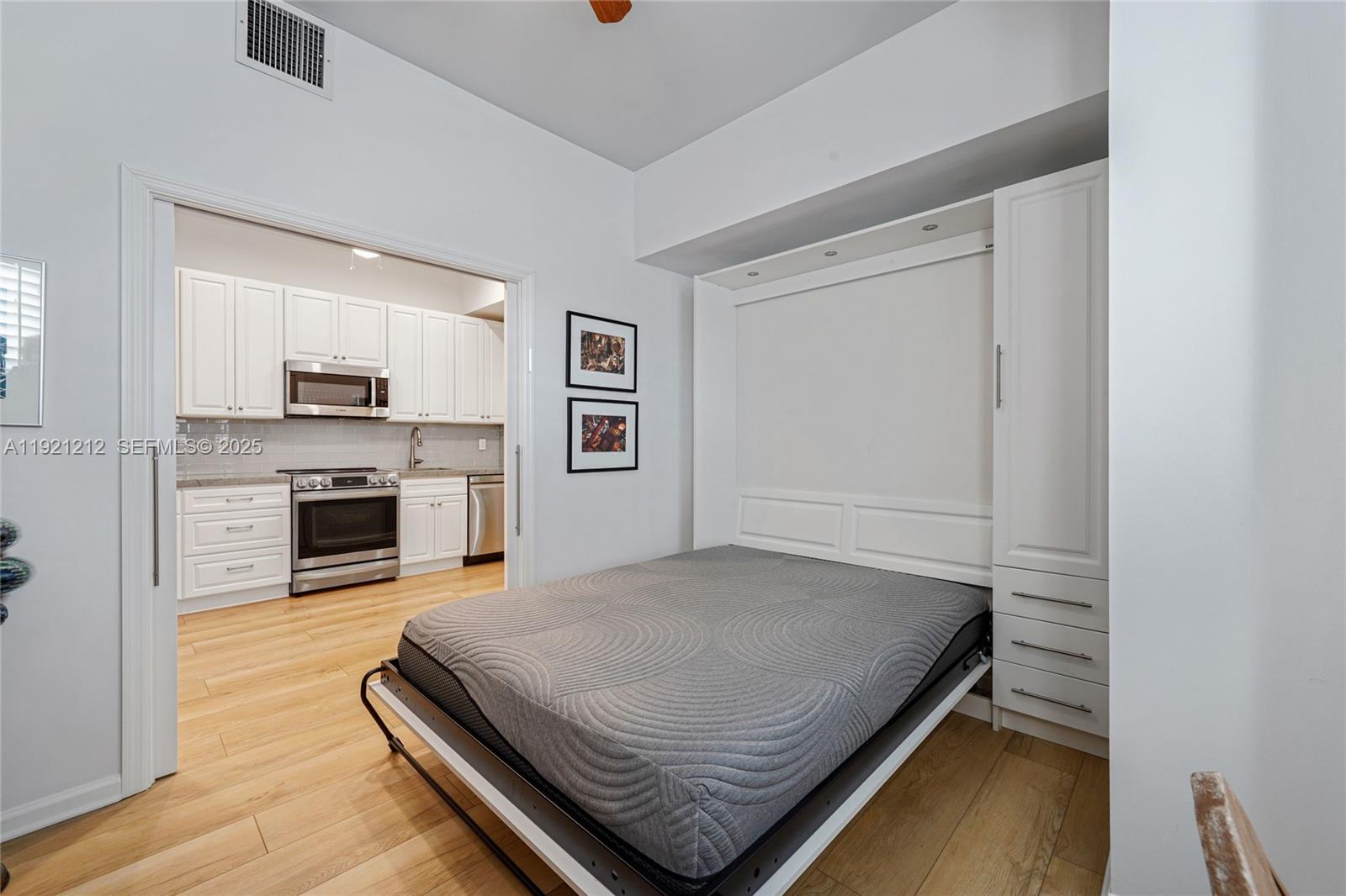 Unique boutique-style building featuring charming Spanish architecture. This stunning 2-bedroom, 2-bath beach residence has been completely gut-renovated with high-end finishes and all-new mechanicals, offering 982 sq ft of thoughtfully redesigned living space in an intimate 3-story, 6-unit building. Every detail has been upgraded, including the kitchen, bathrooms, wood floors throughout, decorative shutters, doors, lighting, in-unit washer and dryer, A/C, and water heater. All brand new. The open-concept kitchen features stainless-steel Bosch and LG appliances, elegant stone countertops, and deep, plentiful cabinetry, perfect for both everyday living and entertaining. Enjoy Art Deco–inspired bathrooms, crown moldings, and large custom closets throughout. Additional features include a private balcony, private secured parking, secured lobby entrance, and a private service entrance. The building has successfully passed its structural integrity inspection, with no special assessments pending. All routine building maintenance is fully funded. Ideally located just around the corner from the beach, and within walking distance to high-end restaurants, boutique stores, and vibrant local entertainment, close to La Gorce golf and Country Club and Miami Beach golf course. This home delivers the ultimate blend of luxury, lifestyle, and coastal living.