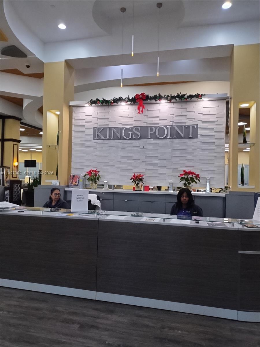 Waterfront open view with one of the Largest Condos in all of Kings Point. One of a kind unit with open patio in addition to 2342 sq feet MUCH LARGER 2650 SQ FEET. Additional Built in in Bedroom and Den. Updated kitchen cabinets and appliances. Most of all Covered Parking for your car and this is first spot outside the Building for convenience. This gem will not last long. Convenient to the spacious elevator this corner unit will give you an large outside patio/w storage. Shutters are included. Maintenance include cable and internet with most channels. Washer and Dryer are large face loaders, newer, in their own private room. Master fits king size bed with lots of room Extra nice area with king size swimming pool, shows and plenty of things to do. Sunshine brings happy people and this is convenience to all. computer generated picture