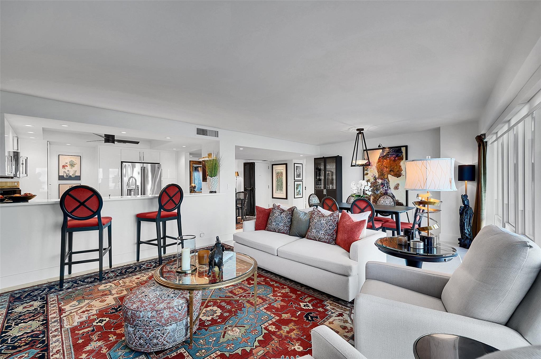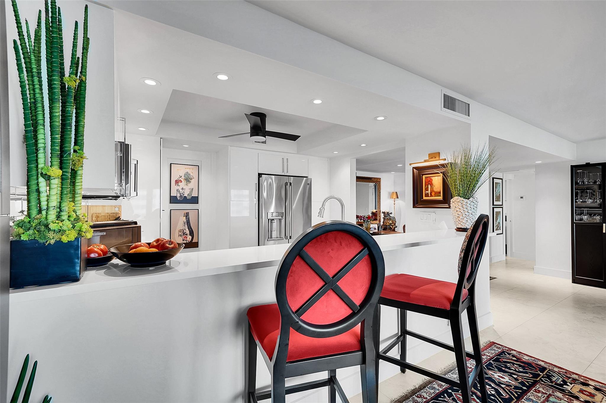 Most beautiful condo for sale in the building by far! This unit's orientation allows you to walk in and see a wide, expansive blue ocean not blocked by another building. Expertly renovated with kitchen opened to the living space & view. Brand new washer/dryer and ceiling led recessed lights are just a few new features. Kitchen has quartz countertops with induction cooking. All closets have built in systems as well as an additional wardrobe closet in bedroom. Impact windows & Door Too! The large balcony lets you enjoy ocean breezes without the direct hot sun beating down on you. Secure garage parking close to the elevator with 24hr doorman & security. Full amenties include gym, sauna, community room and private beach with chairs & Umbrellas. New Resort style pool and deck underway.