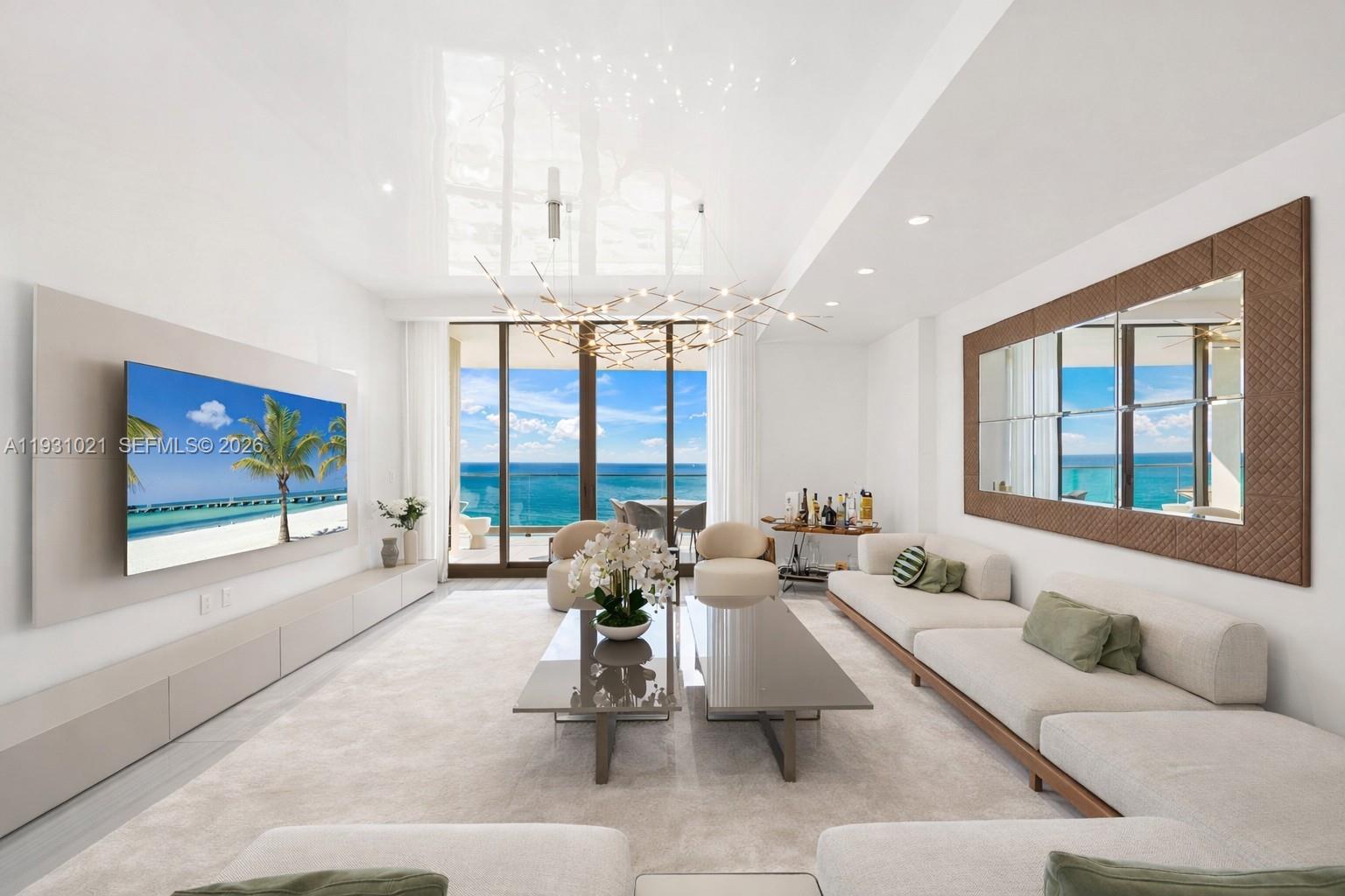 Coveted "Vecchio" residence at Miami's premier lifestyle property, The Estates at Acqualina. Spacious flow-thru with 4 bedrooms plus family room. Luxurious finishes feature custom millwork, custom plaster walls, elegant lighting details, genuine marble floors, gold onyx primary bathroom with steam shower, chef’s kitchen with La Cornue gas range, and top-of-line appliances. Other fine details include ceiling heights of up to 10'6", an expansive oceanfront terrace outfitted with a summer kitchen/grill, and complete smart-home automation to conveniently control lighting, window shades, climate and audio/visual. Bar-none, Miami's most luxurious oceanfront enclave, amenities include Rolls Royce House Cars, five world-class restaurants featuring Avra, Il Mulino and Ke Uh, three pools complete with SurfRider and waterslide, daily breakfast, cinema, skating rink, bowling alleys, F1 and golf simulators, basketball court and more!