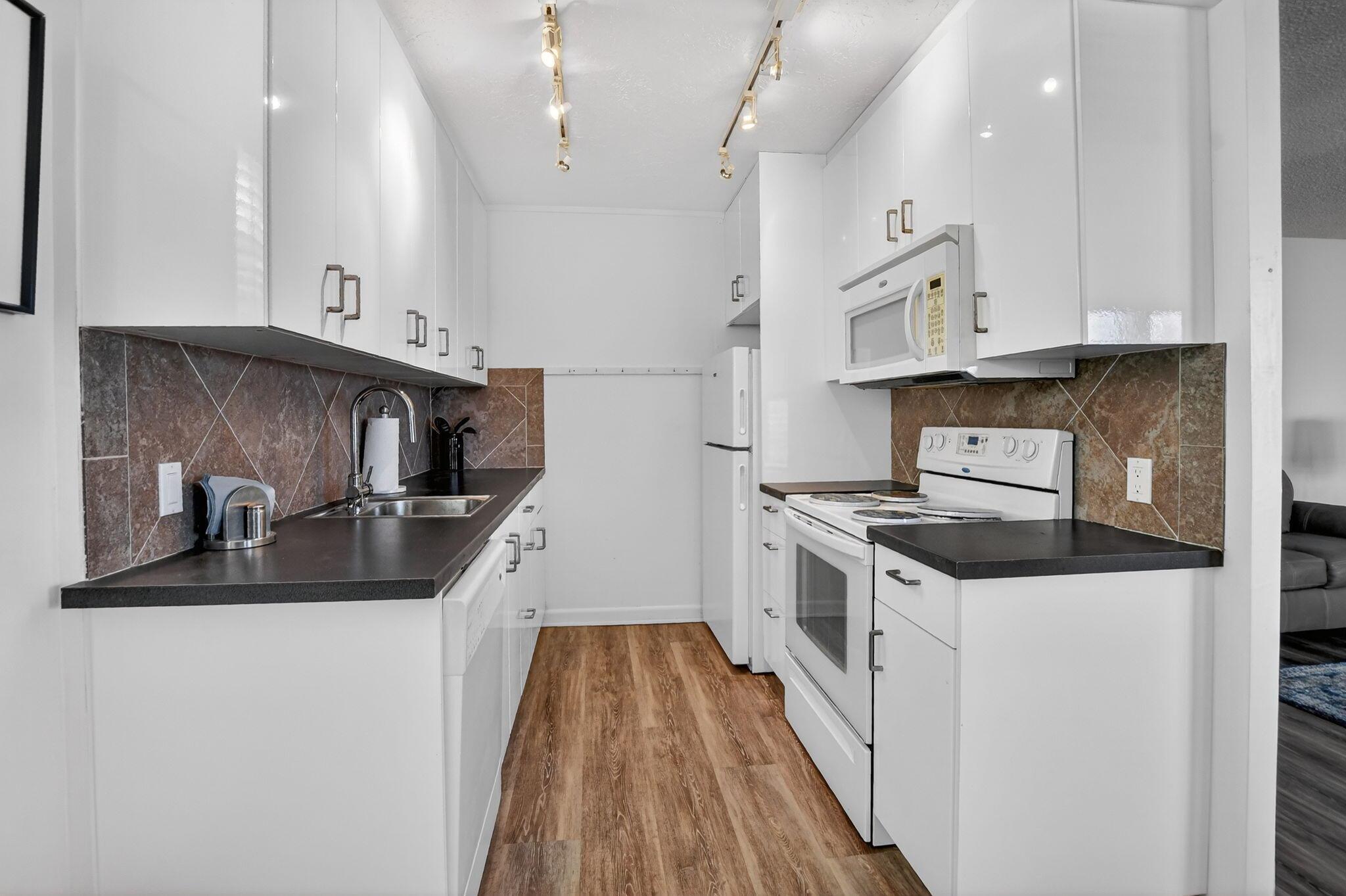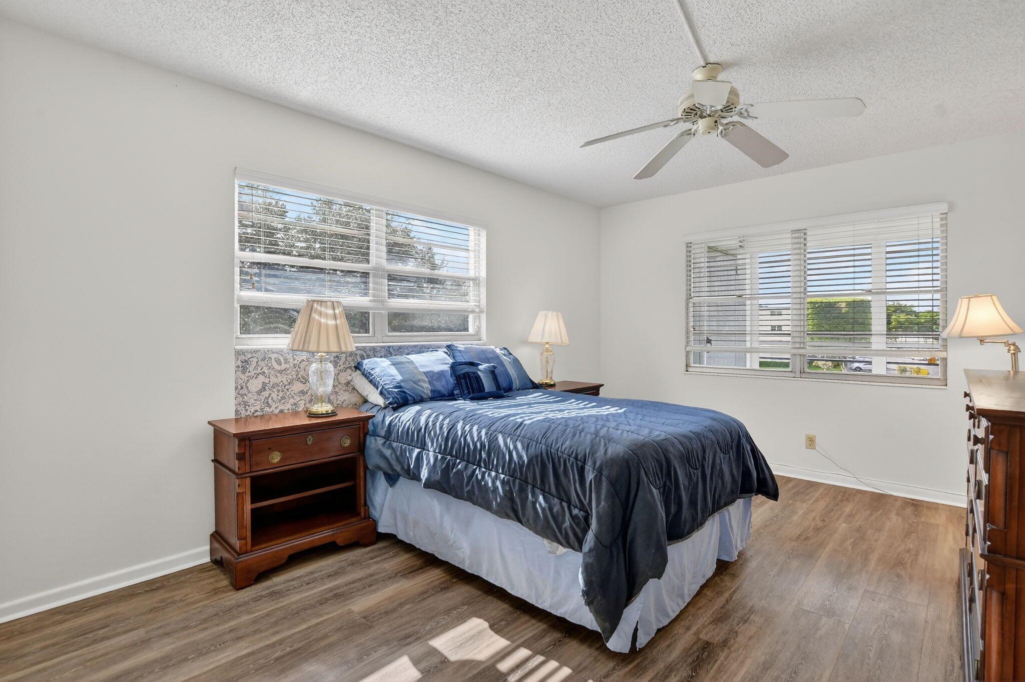 2/1.5, CORNER on the third floor offers an abundance of natural light and serene views. The home features an updated kitchen and wood-look flooring throughout. Both bathrooms have updated vanities. A spacious, screened patio overlooks a magnificent, peaceful lake, perfect for relaxing. This includes a new front door that has been ordered and is pending installation. Close to house of worship and clubhouse. Amenities include internet and WIFI, Century Village is like living in a resort, fitness center, live shows,movies,buses,classes,bingo,card rooms,trips,tennis,pickelball, close to shopping and restaurants,come see and then check out the clubhouse to see it for yourself. Per the association this is a 55 plus community!!!