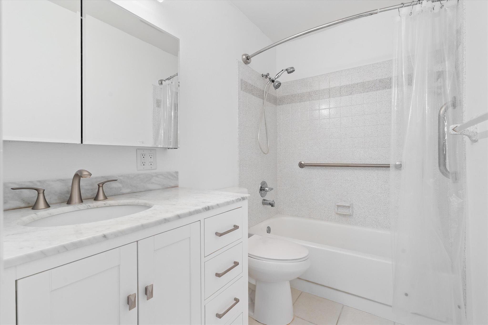 A blank canvas minutes from the beach priced extremely well for you to create the home of your dreams. A corner, 2BR/2BA, 1 story villa. A great floor plan incl. a gated courtyard partially screened and covered and partially open to enjoy the sun. Both bathrooms recently renovated. New roof in 2025, AC in 2019, Water heater in 2021, new paint, and stainless kitch. appliances. Wood laminate in dining/living room, tile in kitchen and baths. Rainberry Bay is a 55+ community with a super active lifestyle. 5 heated pools, 8 pickleball courts, 10 Har-Tru Tennis Courts, a complete fitness center, its own theater with a full program, arts and crafts, billiards, table tennis, shuffle board, bocce, a library, lots of classes, clubs, activities, events and more.