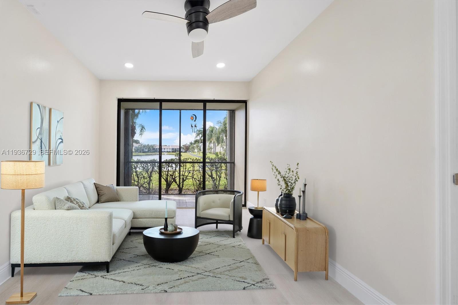 A must tour. Beautifully renovated 1st floor condo where everything is brand new and thoughtfully designed. From the moment you step inside, you’ll appreciate the clean, modern finishes and light, airy atmosphere. The kitchen shines with quartz countertops and all-new stainless steel appliances, including range, microwave and refrigerator—never used and ready for their first owner. Washer/Dryer Hook-up in unit. New tile flooring flows throughout, creating a fresh, low-maintenance living space. Relax on your screened-in porch overlooking the tranquil lake, the perfect spot to enjoy your morning coffee or unwind at the end of the day. Hurricane shutters provide added peace of mind, while the entire home reflects a true move-in-ready feel. Gated community offers a resort-style lifestyle with a pool, community room, tennis and racquetball courts and scenic walking trails. Secure, serene, and beautifully maintained, this condo delivers the rare opportunity to enjoy a completely renovated home with a brand-new feel in an amenity-rich setting.