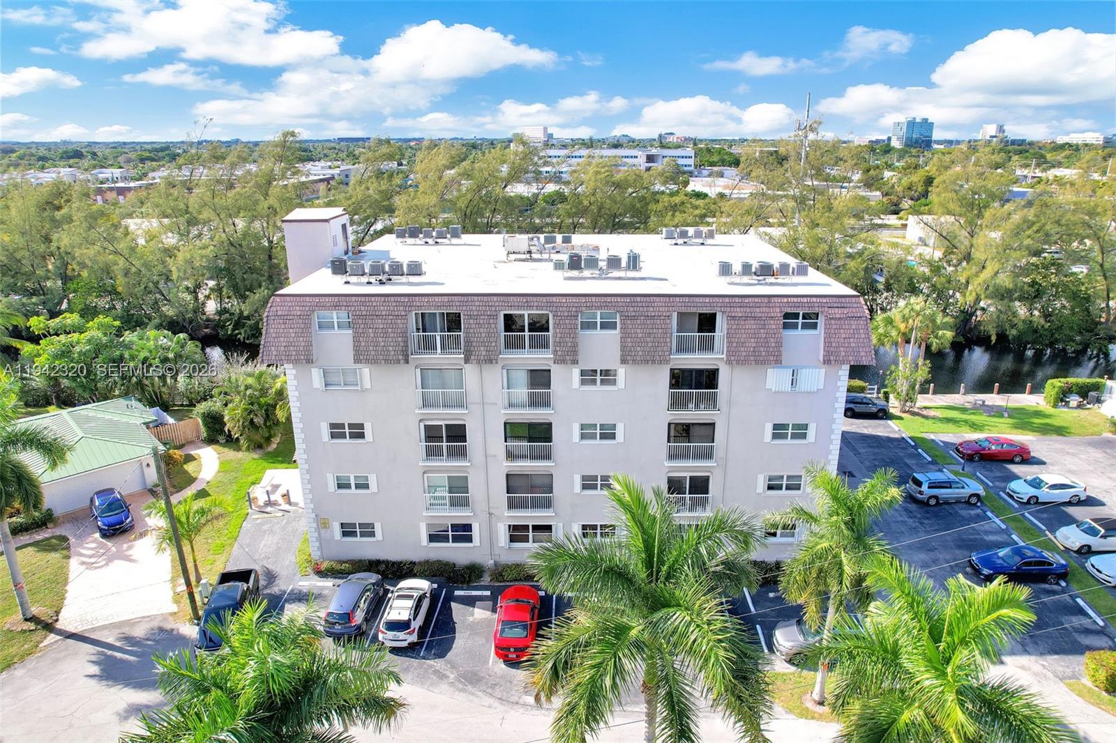 Spacious and updated corner-unit condo in the waterfront community of Riviera Park, on a cul-de-sac in Coral Ridge Isles. Bright 2/2 with South & East exposure and natural light. Renovated kitchen, quartz countertops + custom cabinets, LG induction range, LG ThinQ dishwasher, Frigidaire (2025), both bathrooms renovated new fixtures and cabinets (Oct 2025). Recessed lighting in kitchen & bathroom. Freshly painted, popcorn ceiling removed. For added peace of mind, hurricane impact windows in the bedrooms, bathrooms, and sliding glass doors, + an accordion hurricane shutter on the balcony. Open living and dining areas are spacious—perfect for relaxing or entertaining — bedrooms are comfortable and well-lit with ample storage and 2 walk-in closets. Additional features include a tankless water heater, recently serviced A/C handler (2017), designated parking visible from unit, and guest parking. Riviera Park offers 550+ feet of water frontage and a waterfront lifestyle—ideal for paddleboarding, kayaking, fishing, and boating (fixed bridge w/ ocean access). Community amenities: elevator (2024), heated pool w/ updated systems (2024), tennis court, clubhouse + prep kitchen, car wash area, laundry on every floor, secured lobby entry and pet-friendly policies. Roofs replaced 2022. Conveniently located near Lauderdale-by-the-Sea, Pompano Beach, I-95/Cypress Creek, shopping, dining, parks, Tri-Rail and Ft Lauderdale International Airport. All-ages community. Rentals allowed after 1 year.