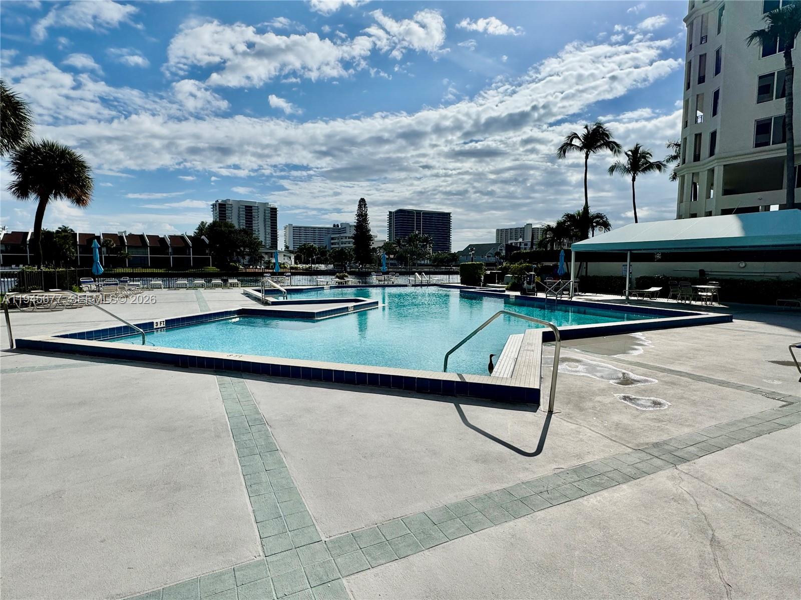 East facing direct intracoastal, pool and ocean view large unit has 1 bed/1 bath/ 1 half bath, all tiled with full size Washer/Dryer in the unit. All HIGH impact windows and doors. Large living and dining area with intracoastal view and partial ocean view. Large bedroom with intracoastal view and 2 walls of closets and primary bathroom. Pet friendly building, guarded gate, security cameras, garage parking, guest parking, near shopping, restaurants and entertainment. Management office on site. Large pool by the intracoastal, fitness center, club room, BBQ area and more. Just blocks to the beach!