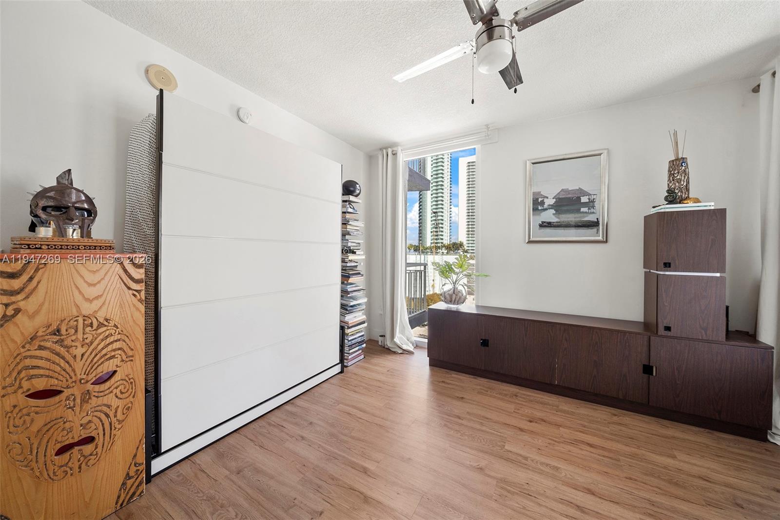 Fully renovated 3-bedroom, 2-bath corner residence with over 1,300 sq. ft. of thoughtfully designed living space. Enjoy two private balconies, including an expansive wraparound terrace—perfect for entertaining or unwinding. The home features a desirable split-bedroom layout, a spacious walk-in closet, and custom closet systems in the bedrooms. Both bathrooms are finished with elegant European fixtures and vanities, complemented by large-format stone on the walls and floors. The modern kitchen is beautifully appointed with sleek stone countertops and matching backsplash, minimalist wood cabinetry, and a clean, functional layout. Additional highlights include impact windows, in-unit washer/dryer, and solid wood doors throughout. Two assigned covered parking spaces complete this exceptional offering.