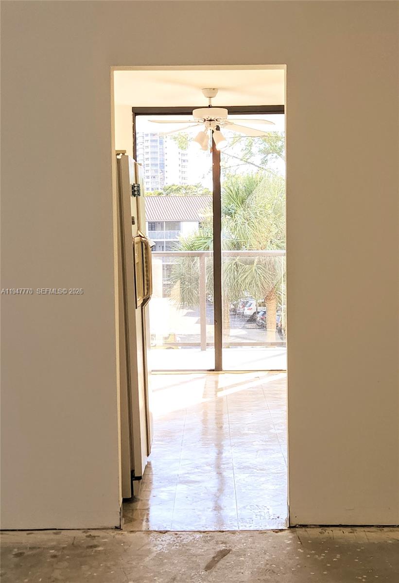 Bring your imagination to transform this spacious, sun-filled third floor corner unit with southeast exposure. Enjoy relaxing views of foliage and nature just outside the many windows. Huge wraparound balcony with new glass railing. Smooth ceilings throughout, just painted. Eat-in kitchen. Concrete floors ready to be finished. Abundant closets! Extra storage, convenient covered parking space on second floor! Being sold in its as-is condition. New impact windows to be installed in 2027+/-. Please call for special assessment information. Excellent Biscayne Cove Clipper in vibrant Aventura. Highly rated schools Aventura Charter or Waterways K-8/Krop. Pet friendly, max 20 lbs. Amenities include 24/7 guard gated security, valet, gracious attended lobby, 2 pools (1 heated), hot tub, fitness center, yoga/media/game rooms+. Lit tennis, racquetball, and basketball courts now under construction. Maintenance incudes all amenities, enhanced basic cable, water, pest control, etc. Minutes from beach, world class shops & dining, Aventura Mall, Bal Harbour, Gulfstream, entertainment, airports.