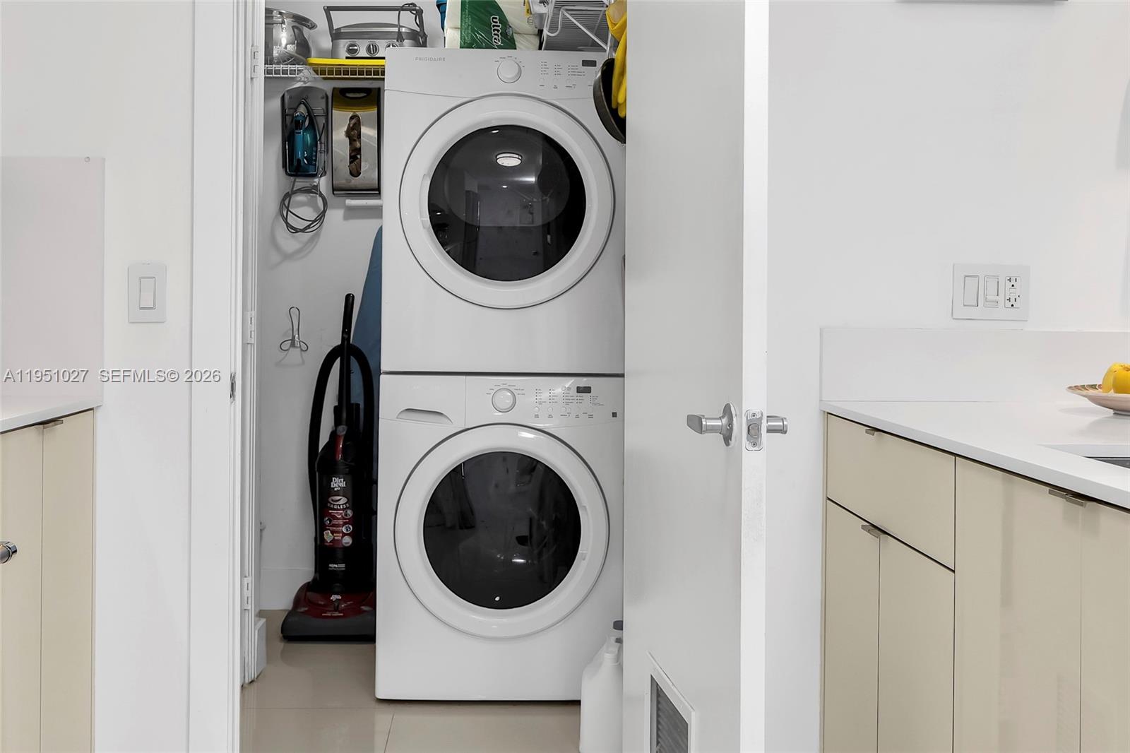 Stunning fully renovated 2 bedroom 2 bathroom featuring large white tile throughout this large spacious open space, great for entertaining all your friends and family. Fully updated bathrooms both offering walk-in showers with custom made vanities with lots of storage. Modern fully updated kitchen with large waterfall island includes stainless steal appliances, kitchen aide induction cooktop with convection oven. Air conditioner is just shy of 2 years old Large stackable frontload washer and dryer. Breathtaking unobstructed downtown views. Building offers: 2 heated pools, jacuzzi, 2 gyms, clubroom, saunas, 24 hour concierge, 24 hour valet and 24 hour security patrol. FOB secured building. Walk to Dadeland Metro Station South, Publix, Trader Joes, Dadeland Mall and all up and coming Restaurants.
