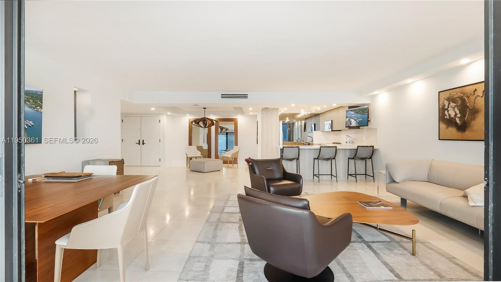 Stunning fully renovated and completely furnished residence offering breathtaking views of the ocean and the Miami skyline. This spacious 2 bedroom, 2 bathroom condo has been thoughtfully redesigned with high end finishes throughout and is truly move in ready. Custom built walk in closets provide exceptional storage, while elegant marble and porcelain floors enhance the home’s refined, modern feel. Floor to ceiling windows flood the residence with natural light and frame spectacular sunrise and city views. The open living and dining areas flow seamlessly, creating an ideal space for both everyday living and entertaining. Enjoy the privacy of an exclusive island community while being just minutes from Brickell, downtown, Miami International Airport and a short walk to the vibrant shops, dining and lifestyle of Coconut Grove. Resort style amenities, 24 hour security and a serene upscale setting complete this exceptional offering. No special assessments. A rare opportunity to own a turnkey waterfront residence with iconic views in one of Miami’s most desirable locations.