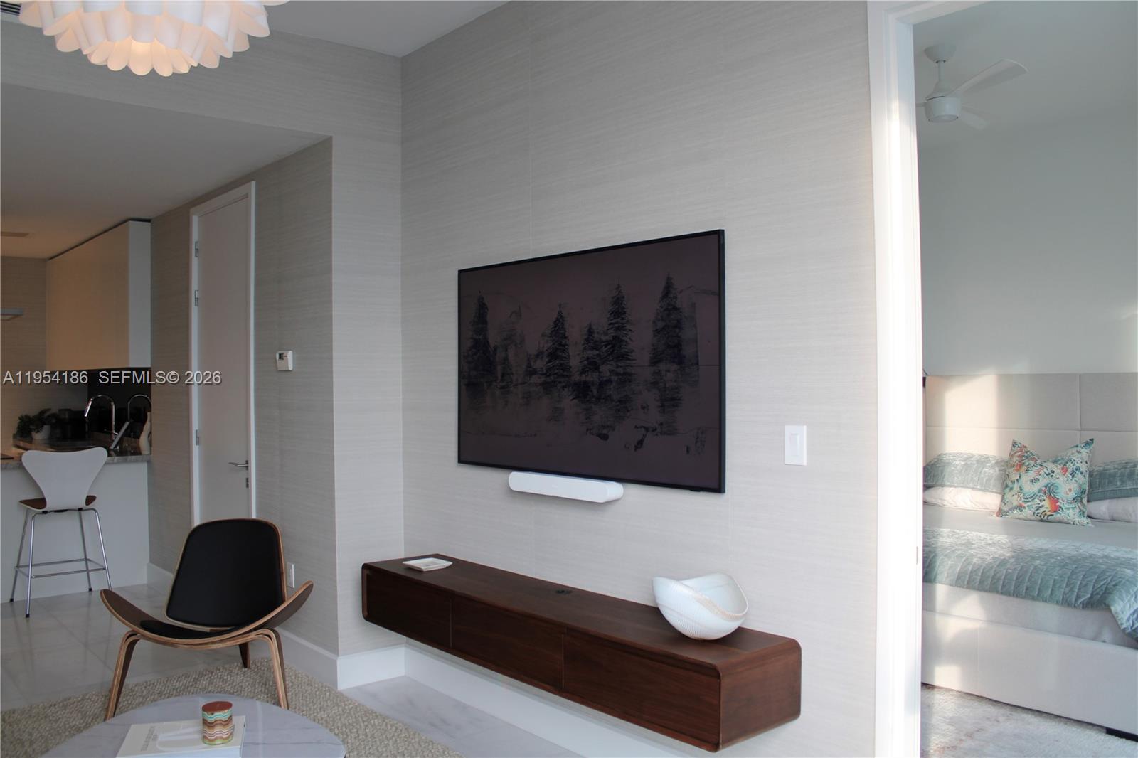 Own the views, the lifestyle and the exclusivity at Missoni Baia! This 1-bed, 1-bath residence offers a completely upgraded and turnkey opportunity. The interiors have been elegantly decorated with custom wallpaper accents, designer furniture, and a soft contemporary palette that compliments the natural light and clear architectural lines. The open-concept layout features a gourmet kitchen with premium Wolf and Sub-Zero appliances. Enjoy resort-style amenities, including 3 pools with cabanas, fitness center, yoga and pilates classes, men's and women's spa with a steam room and sauna, tennis and pickleball courts, grilling area, and private resident lounges including a media room and a game room - all curated with the artistic flair of Missoni's iconic aesthetic.