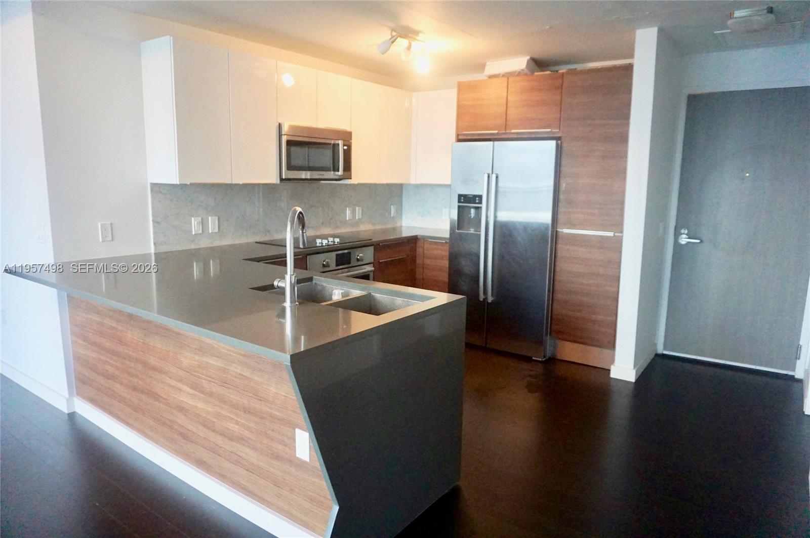 Gorgeous unit with high end luxury finishes such as bosh appliances, roller shades, marble bathrooms, spacious closets, new flooring, full size washer/dryer. Beautiful bay and city views in a LEED silver certified building with energy efficient a/c system and water heater. Enjoy this boutique style building with free electric car charging stations, pool, spa, gym, cyber cafe, social lounge and business room. Excellent location in booming Edgewater right by the intracoastal bay with a beautiful private boardwalk. Located a few minutes from Wynwood, midtown and design district for shopping and many restaurants. See broker remarks.