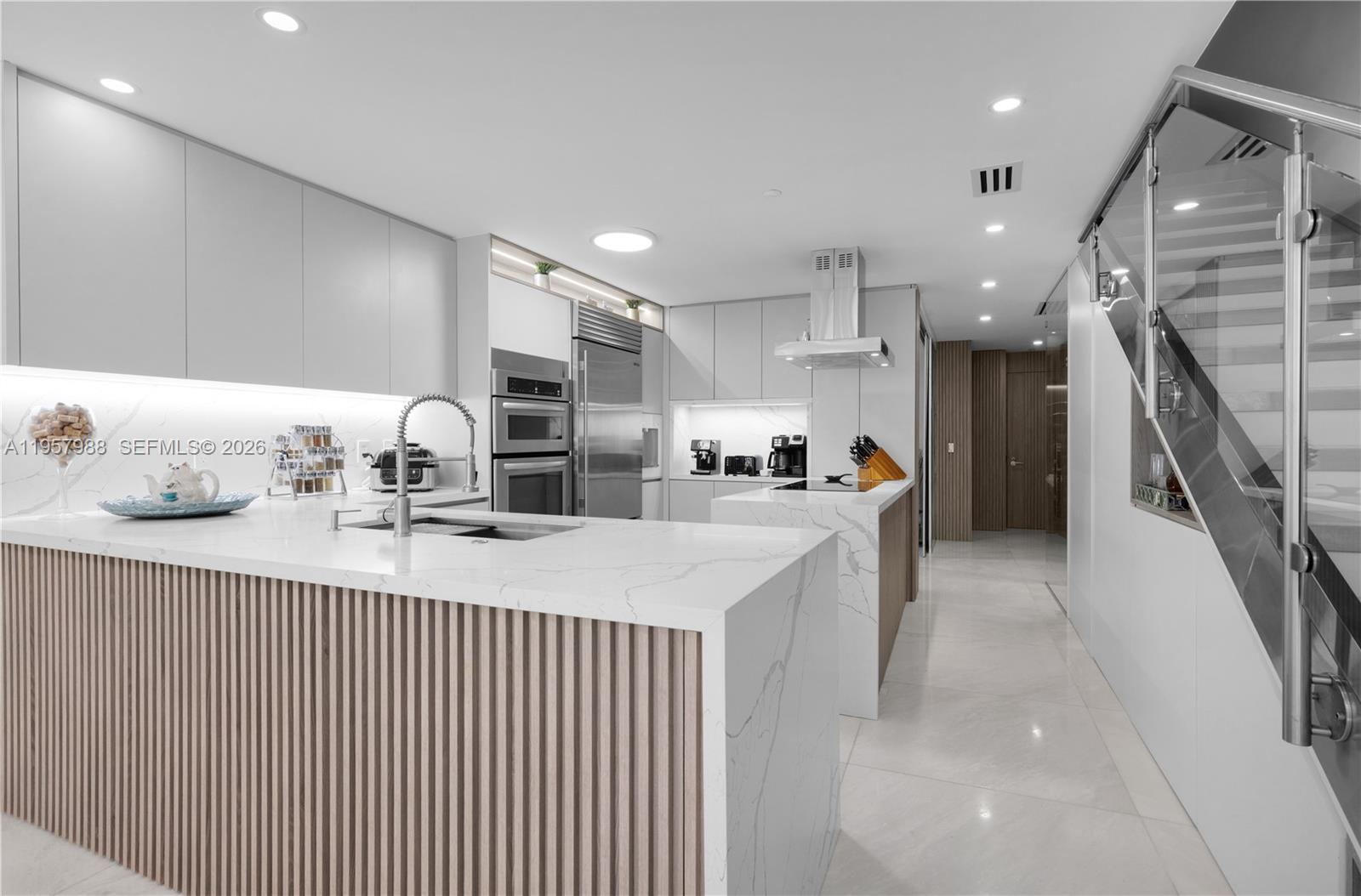 BOATERS PARADISE ! Impeccable 2 bed/3 full bathrooms unit. recently renovated kitchen, Master bedroom upstairs, Den turned into an office downstairs, 2 parking spaces + Huge Storage are included on the sale. Marble floors and custom made cabinetry throughout. Ultra modern ARTECH designed by international ARCHITECT Carlos Ott: 3 pools, 2 tennis courts, fitness center, spa, massage room, racquetball, cinema, lounge, smart technology, 24/7 SECURITY, valet parking etc. Electric vehicle charging station in the garage. Pet friendly community. Close to parks, restaurants, shopping, and the beach. Unit is in mint conditions.