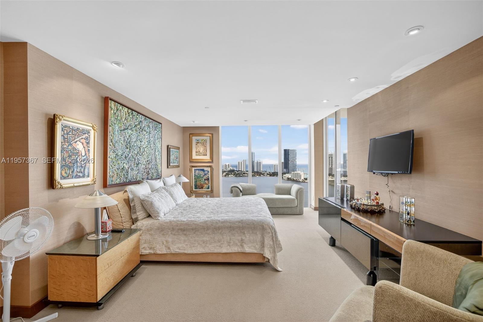 WOW comes out of your mouth every time you walk in. Introducing a truly rare Williams Island penthouse offering 5 bedrooms and 4.5 baths with immense 14-foot ceiling heights and breathtaking, full panoramic views stretching from the direct ocean to the east and southeast, all the way to the dazzling city skyline. This residence delivers a one-of-a-kind “wow factor” with a dramatic glass staircase, a sunken living room, and an elegant formal dining room—perfectly designed for both grand entertaining and refined everyday living. Enjoy limestone flooring throughout, custom doors, and the convenience of an internal private elevator. The renovated chef’s kitchen features state-of-the-art Gaggenau appliances, sleek European cabinetry, and stunning Taj Mahal marble countertops that elevate the space with timeless luxury. A rooftop terrace offers the ultimate outdoor setting—decorator-ready and ideal for creating your dream summer kitchen and entertaining space under the Miami sky. The principal suite is a showpiece, featuring a renovated spa-style bathroom with onyx accents, backlit countertops, top-of-the-line finishes, and an oversized shower with dramatic ocean views. This is truly a world-stage residence—rare, unforgettable, and unlike anything else. Enjoy the legendary Williams Island lifestyle with world-class amenities, 15 har-tru tennis courts, 4 pickleball courts, 2 panel courts, 27,000 health spa w/.indoor pool, 105 slip world class marina, 4 restaurants venues, and more