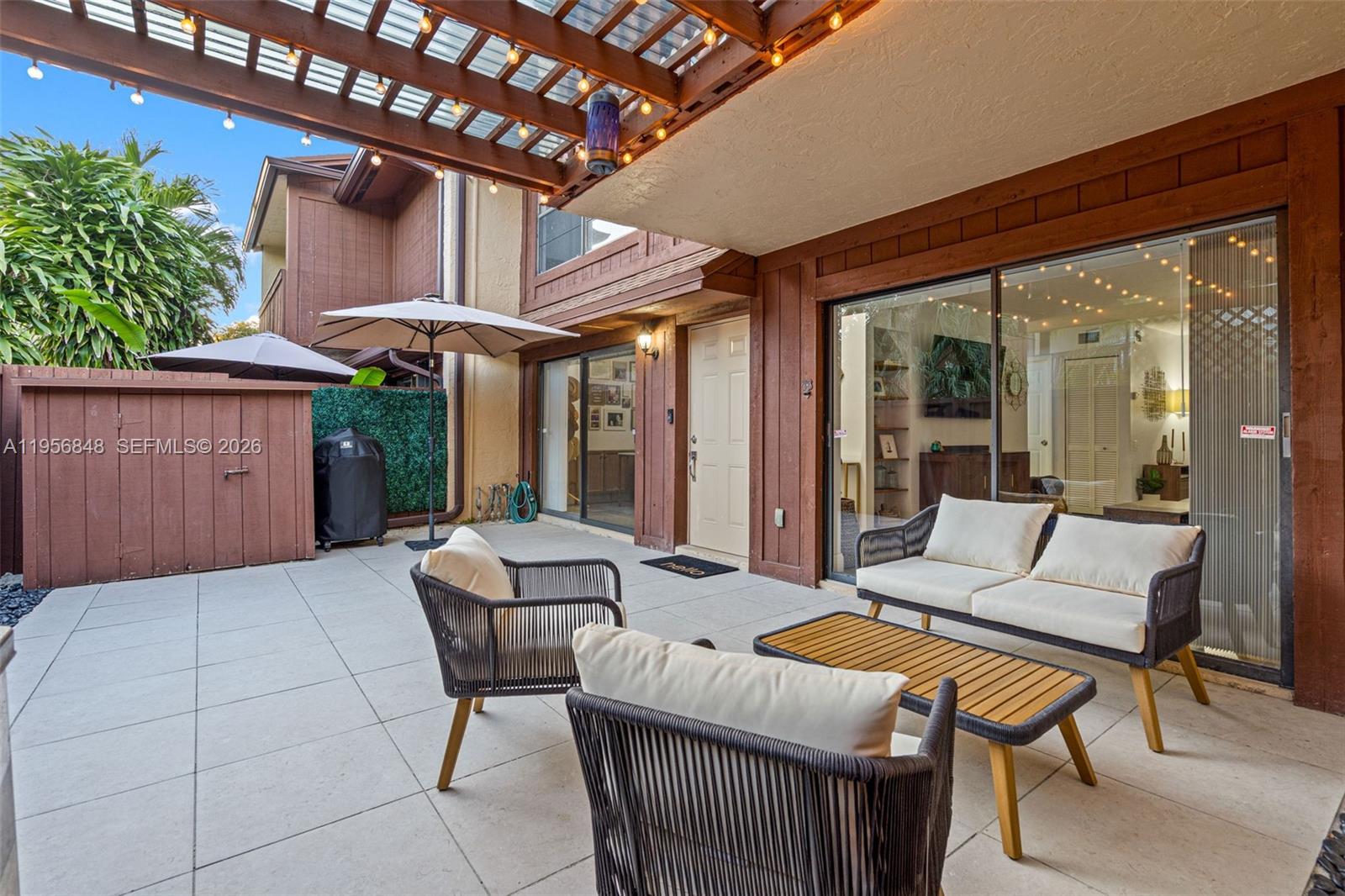 Welcome to "The Gislos Home" -a beautifully and totally renovated townhouse offering rare character, privacy, and thoughtful upgrades throughout. Bright and spacious interior features granite countertops everywhere and a flexible layout including a desirable first-floor bedroom/office and dual master layout upstairs. Its large front patio with 24 x 24 porcelain pavers, a shed for storage and a unique architectural feature (no longer permitted, no longer grandfathered): an original trellis, making this outdoor living space truly one of a kind and perfect for morning coffee, evening conversations and memories waiting to be made. Located at the back of the building, this home enjoys a quieter and more private setting, only few steps from your assigned parking spot and free from direct parking lot exposure and traffic flow. Less noise + no headlights = enhanced tranquility. Lovingly maintained and filled w beautiful energy -it's a storybook setting for modern comfort and your next chapter! Also, (it's the "less expensive & remodeled" townhouse in this pet friendly community!). Enjoy the huge greenbelts w hills, the award-winning pool by Homes and Gardens, the 3 tennis courts, bike n jogging pathways, pavilion for parties and playground for toddlers and kids! And, you can have up to 4 cars. Long list covered by maintenance fee, attached! Additional details are available upon request.