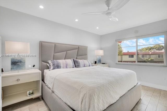 Discover refined elegance in this one-of-a-kind luxury residence at Manor Grove, featuring a meticulously designed open floor plan with a chef's kitchen showcasing double waterfall Quartz countertops with natural stone inlay, penny tile backsplash, premium stainless steel appliances, custom wood cabinetry with soft-close features, and a hidden washer/dryer concealed behind matching cabinetry. The sophisticated interior flows seamlessly with low-maintenance porcelain wood-look tile throughout, a stunning glass stairway with stainless steel banister, custom Levolor shades, high-end smart home lighting, built-in television niches, and custom interior doors with frosted inserts. The spa-inspired primary bath features custom glass doors, a pebble and sea glass shower base with full-length niche, while both bedrooms offer custom closets with interior lighting and blackout shades for total privacy. Light, airy spa colors and custom base moulding create a serene atmosphere throughout. What truly sets Manor Grove apart—not just in Wilton Manor but throughout the entire area—are the spectacular natural green spaces that create a serene environment perfect for pet lovers, offering incredible outdoor spaces to roam and explore within the secure, beautifully maintained complex. New matching pavers create a private fenced patio, while impact doors and windows, upscale tiled walls complete this lifestyle statement. Move-in ready with 2025 taxes paid and current.