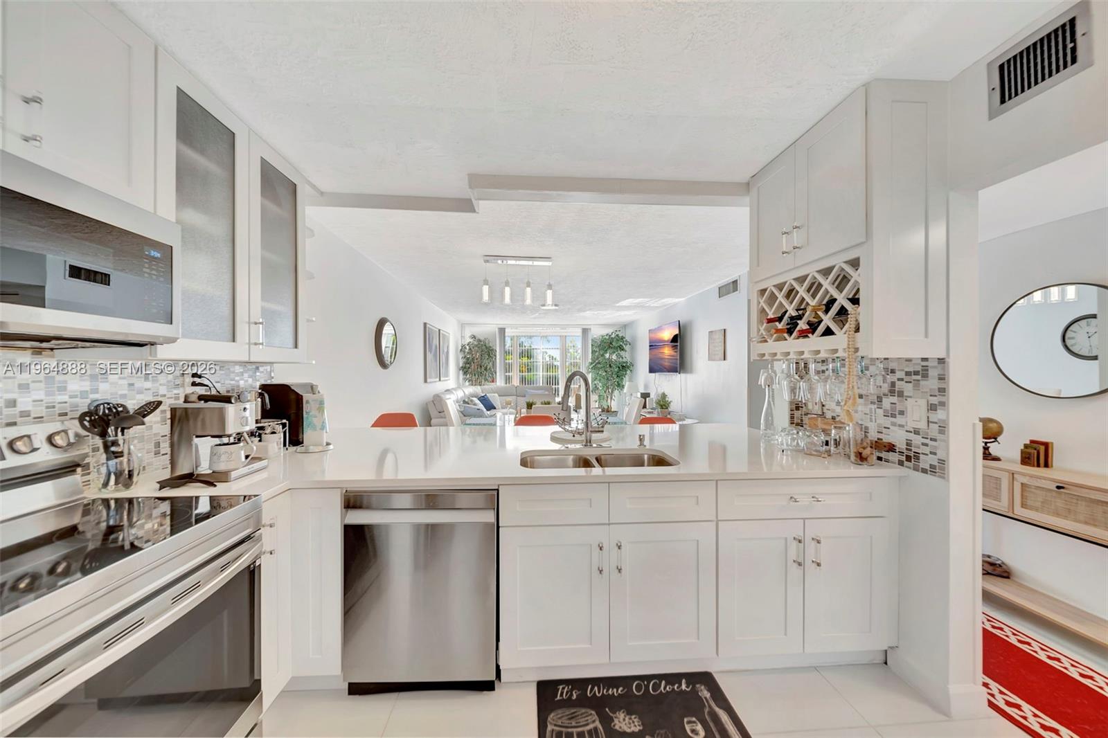 TURNKEY - FULLY FURNISHED. This beautifully renovated 2-bedroom, 2-bath condo offers the perfect blend of style, comfort, and convenience. Thoughtfully updated from top to bottom, the home features modern finishes and a clean, cohesive design throughout. Elegant tile flooring runs seamlessly across the entire unit, creating a bright and polished feel. The open-concept layout makes everyday living and entertaining effortless, connecting the spacious living room to the dining area, upgraded kitchen, and enclosed balcony for added versatility. The kitchen is truly a “standout”, complete with SMART appliances, custom cabinetry, and sleek contemporary fixtures that elevate the space. Both bedrooms are generously sized and feature HUGE walk-in closets. The well-maintained and active community provides resort-style amenities including a fitness center, sparkling pool, clubhouse, BBQ Courtyard and scenic walking paths. Centrally located near shopping, dining, and major highways, this condo delivers both lifestyle and convenience in one exceptional package. ASSESSMENTS PAID. ROOF 2025. NEWER AC AND WATER HEATER, PRIVATE STORAGE. ASSIGNED PARKING, PLENTY OF GUEST PARKING, SIRS REPORT COMPLETED.