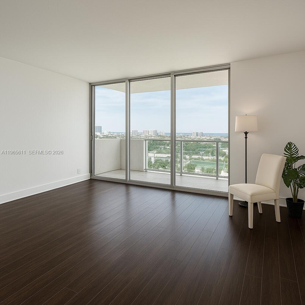 Ocean Breeze! Large spacious living area and extra den/bedroom Top Line in building over soccer field and perfect height - also see thru balcony above and below don't have see thru over football if at mirador - ring from front desk all day sunlight from sunrise to corner window over looking bay for sunset views, high floor corner unit, permitted separate den/bedroom w added separate bathroom...Experience stunning condominium amenities and breathtaking water views from pool area Abundant natural light. spectacular bar front pool, fitness center, and 24-hour doorman for your convenience