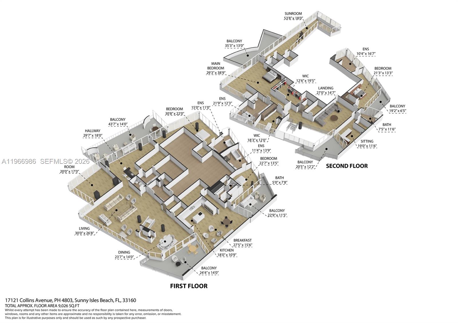 Experience unparalleled luxury in this renovated PH #4803 at Jade Ocean. Boasting 8,332 SF of interior living space, this 6 br, 7.5 ba residence truly lives like a private mansion in the sky. Private elevator opens directly into the unit. Designed for both grand entertaining and elevated everyday living, the home features expansive living + family rooms, along with a soundproofed studio/party room complete with its own bar. The primary suite is a retreat, featuring a dedicated movie room, gym, and sauna. Over $2 million in custom renovations showcase European white oak flooring, stretch ceiling upgrades, and designer lighting. 2,000 SF of terrace space with breathtaking 360 degree views of the Atlantic Ocean, beach, and Intracoastal. Assigned parking spaces Located in P3 #3065, #3044, #3066. View Matterport tour for a detailed walkthrough of the property.