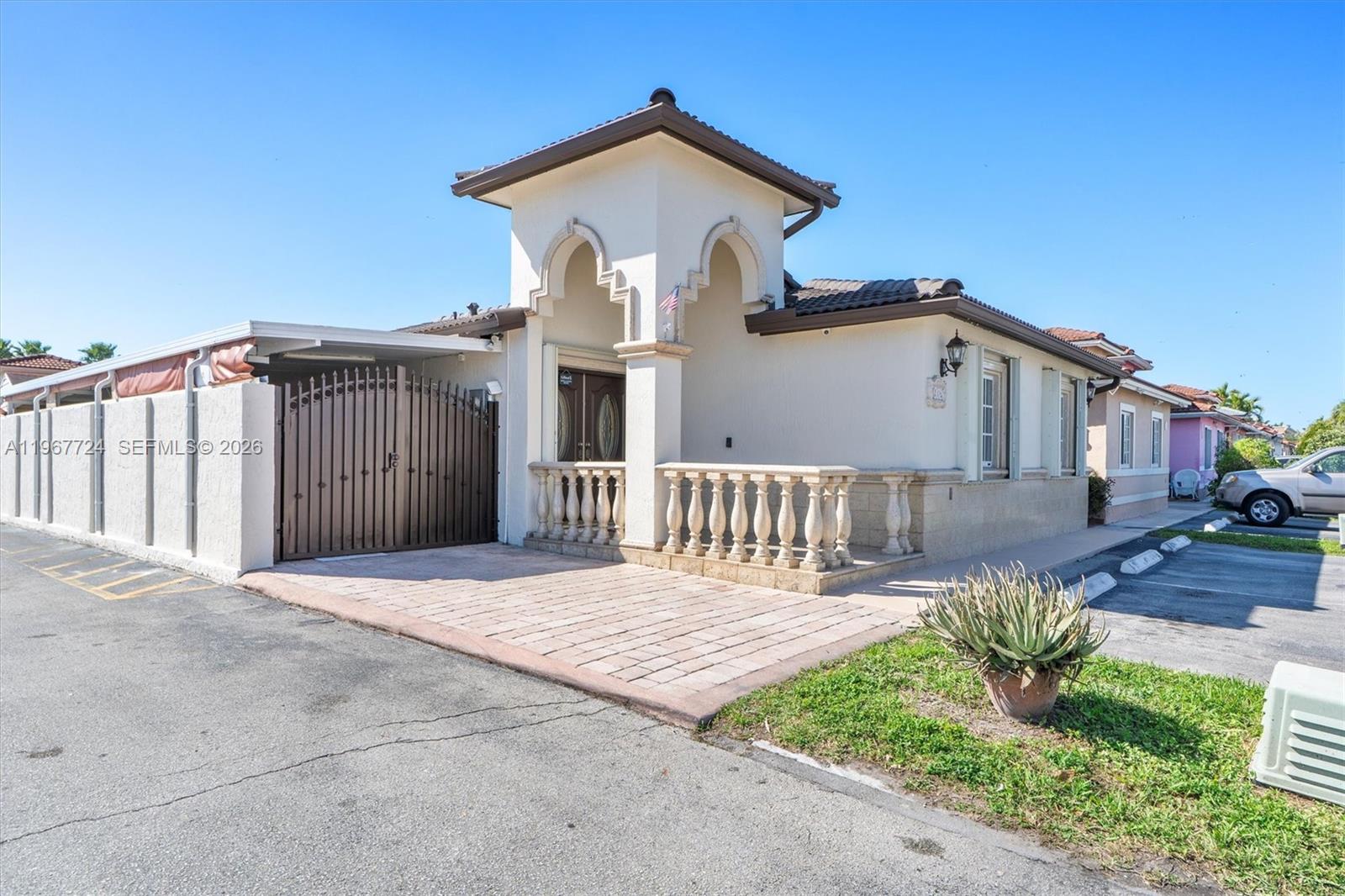 Pristine corner-unit home in a highly desirable area of Hialeah Gardens, Los Palacios I, where properties rarely come to market. This 3-bedroom, 2.5 bathroom residence has been owned by the original owner and is kept in excellent, move-in-ready condition. Features include double doors, vaulted ceilings, updated bathrooms, and a spacious chef’s kitchen ideal for everyday living and entertaining. The enclosed glass, air-conditioned lanai provides additional flexible living space. Outdoor amenities include a fully equipped gas kitchen, ½ bathroom, and a side terrace with an insulated aluminum roof and awnings for comfortable year-round use. Three assigned parking spaces. Excellent layout, exceptional care, and a rare opportunity in a sought-after community. Close to schools, shops, and major highways.