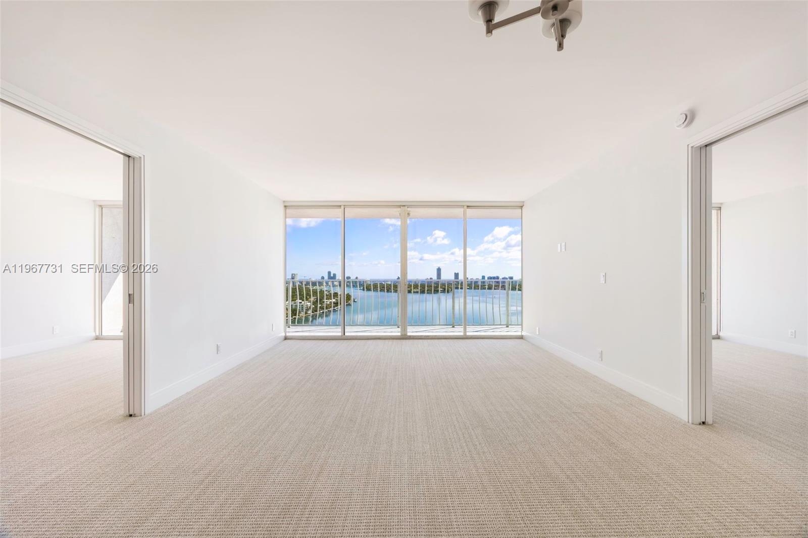 The most desirable line in the building. Enjoy unobstructed Biscayne Bay views from every room in this beautifully updated 23rd-floor residence at Grandview Palace. This line captures sweeping water vistas and exceptional natural light. Expansive living areas open through solid wood pocket doors to a full-length balcony, creating seamless indoor-outdoor living. Split floor plan offers privacy and functionality. This turnkey 2BR/2BA features high-end finishes throughout, including new flooring, updated bathrooms, and a sleek kitchen with granite countertops and stainless steel appliances. Tankless water heater, in-unit washer/dryer, and 2 assigned parking spaces. Resort-style amenities: Olympic-size pool, Jacuzzi, marina, 24-hour security, dining, retail, and salon. Prime North Bay Village location.