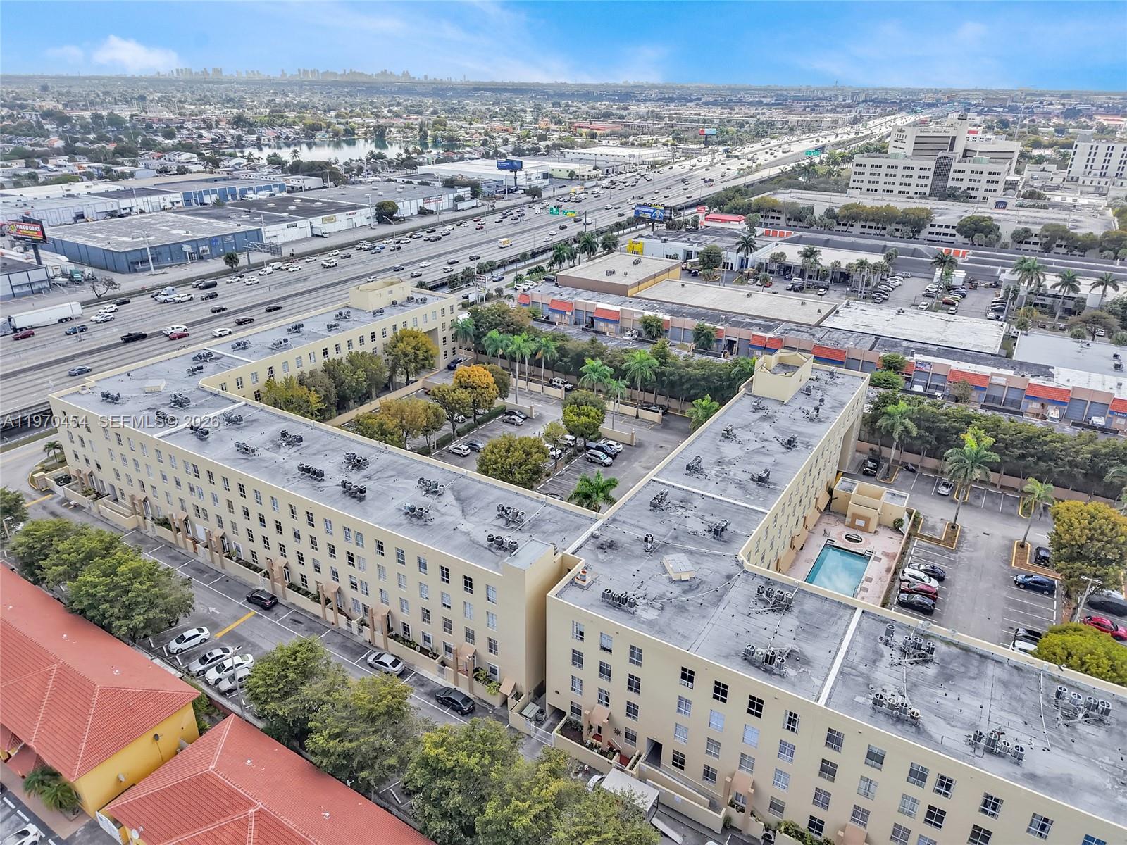 Rare bi-level corner penthouse condo! Only 4 of this model exist in Royal Palms, and this is the larger 1030 sq ft end unit. The entry is on the 4th floor with an open living/dining area and a half bath. Downstairs are two bedrooms, each with a full bath and walk-in closet. This unit has an end-of-hall location for great privacy, and it's less than 20 steps to the side staircase, leading you near the complex entrance and your two assigned parking spots. Visitor parking is near the pool/spa area. Located 0.4 miles from Palmetto Hospital and situated alongside Palmetto Expressway for easy commutes. Small assessment balance paid by the seller at closing! Near shopping malls, schools, Miami Dade College, restaurants, and medical offices. Zoned for excellent schools. $250 fee for pets (dogs, cats, birds.) Maintenance includes water.