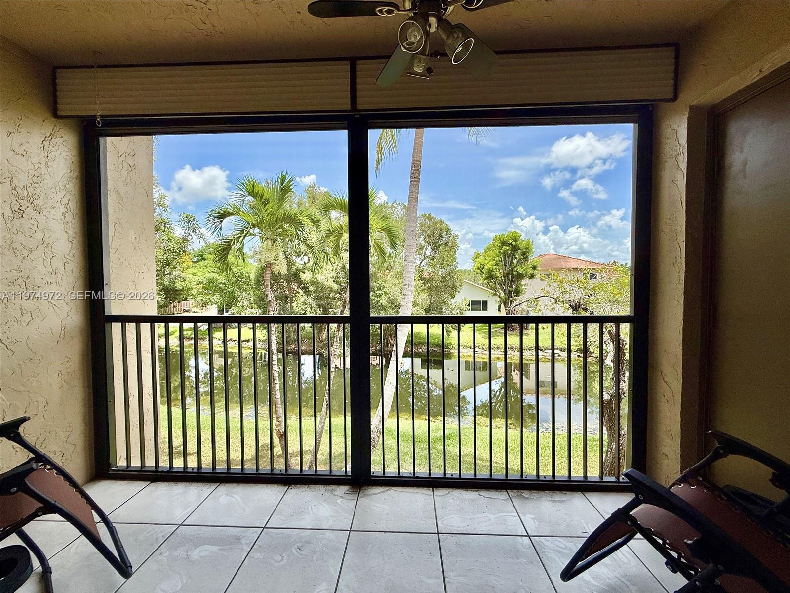 Spacious & impeccably maintained 2BR garden apartment on the 2nd floor with tranquil water views. Features tile & hardwood floors, Impact Windows & Entry Door + Accordion Shutters, updated baths, A/C, water heater, appliances & electrical panel. Ceiling fans & room-darkening pleated blinds in every room, stackable washer/dryer, screened porch & balcony with storage closet. One assigned parking spot in front + guest spaces. Maintenance dues include water, cable TV & Internet! Association finances in order, and the **40-year milestone inspection is complete** Enjoy a community pool & full access to Bonaventure Town Center Club—gym, tennis, racquetball, bowling, skating, basketball, 2 pools, kids' splash area & more! Leasing is allowed after 1 year of ownership. **GOT CASH? MAKE YOUR OFFER**