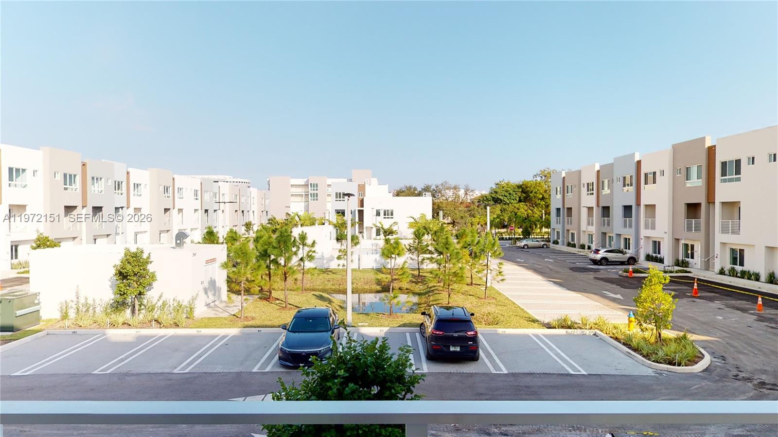 Contemporary 2-bedroom, 2.5-bathroom plus den unit designed for modern comfort. This two-story residence is located on the second floor of the building. The entry level features a sleek kitchen with quartz countertops and state-of-the-art stainless steel appliances, an open living/dining area, a private balcony, and a guest half-bathroom. The upper level hosts two bedrooms—including a primary suite with an en-suite bath and walk-in closet—built-in storage, a second full bathroom with a tub, a versatile den, and a laundry center. The unit features laminate wood floors throughout with tile in the bathrooms. Includes 1 assigned parking space. Residents enjoy a community pool and barbecue area in a prime location near Aventura with easy access to I-95.
