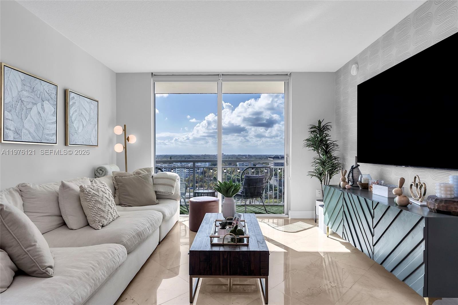 Largest Floor plan in the building! Substantially remodeled 2 bedroom, 2 bath unit plus den - easily convertible into a 3rd bedroom or private office. This spacious unit features beautiful polished marble flooring throughout the living area and bathrooms with elegant wood-look tile in bedrooms. Gorgeous unobstructed sunset views. Unit Includes one assigned parking space with option to rent a second space and a private storage unit. Building offers: 2 heated pools, jacuzzi, 2 gyms, clubroom, saunas, 24 hour concierge, 24 hour valet and 24 hour security patrol. FOB secured building. Walk to Dadeland Metro Station South, Publix, Trader Joes, Dadeland Mall and all up and coming Restaurants.
