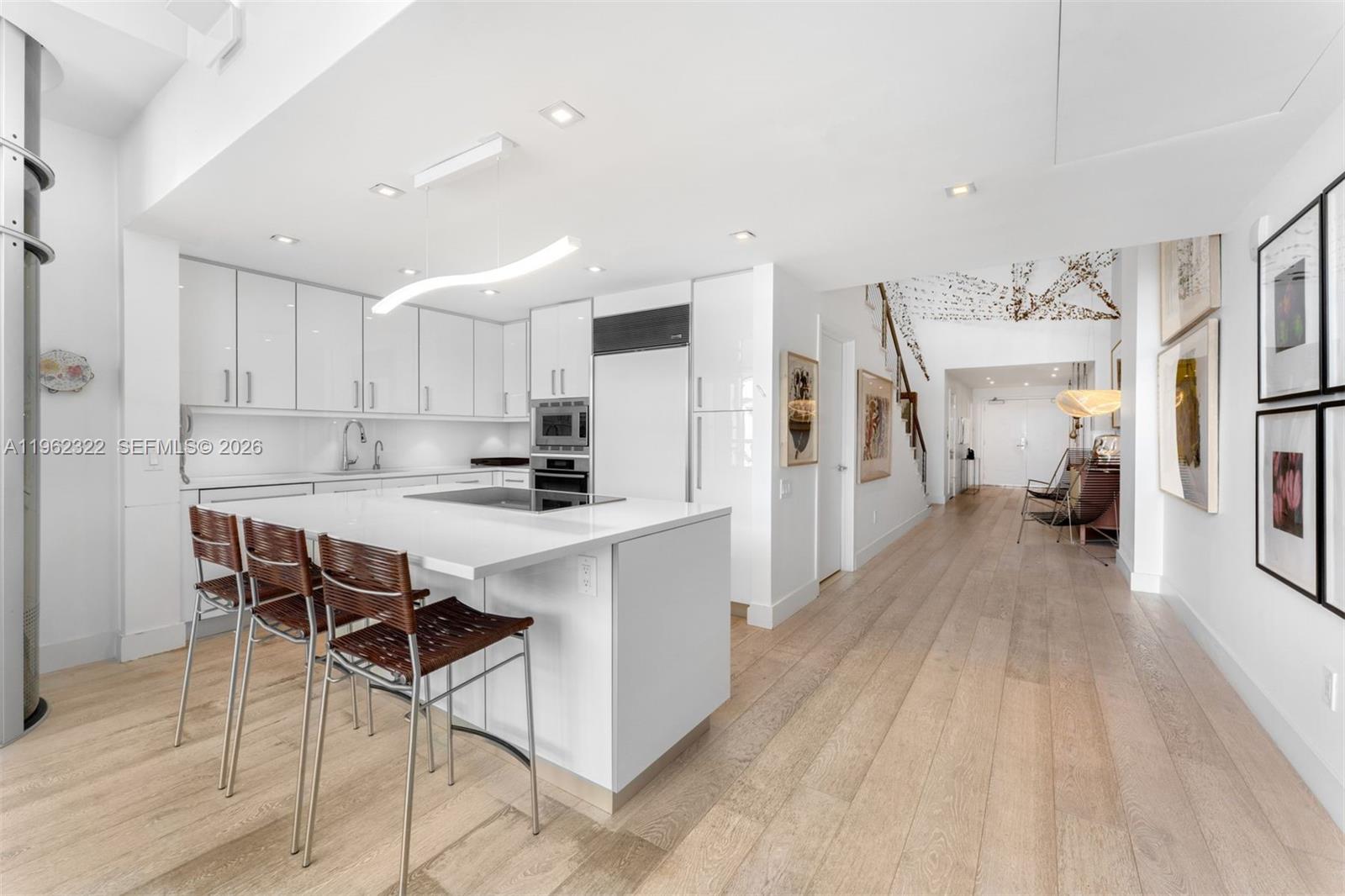 A true masterpiece of beachfront loft living at the Carillon Wellness Resort, Beach House 3 offers the feeling of a private beachfront home. This sanctuary of space and light boasts a dramatic, open-concept floor plan with 20-foot ceilings and expansive, light-drenching windows. A grand staircase leads to an open-air office with mesmerizing ocean views, and the grand suite includes a private balcony, 2 walk-in closets, and spans the full length of the unit. A private internal elevator provides effortless movement between both floors. Beach House 3 includes two primary suites. One on the main level and the Grand Suite on the second floor. The thoughtful layout includes multi-purpose rooms with innovative, collapsible walls that can effortlessly expand the floor plan or be partitioned into private retreats, seamlessly adapting to any lifestyle. Additional features include a generously proportioned laundry room, extensive oversized closets, and dedicated on-site storage. Owners have unlimited access to The Carillon's world-class amenities: a globally renowned spa, cutting-edge fitness programming, four heated pools, diverse culinary dining venues, and a full-service beach club. This residence is the perfect combination of a highly flexible, sophisticated-designed home and resort living.