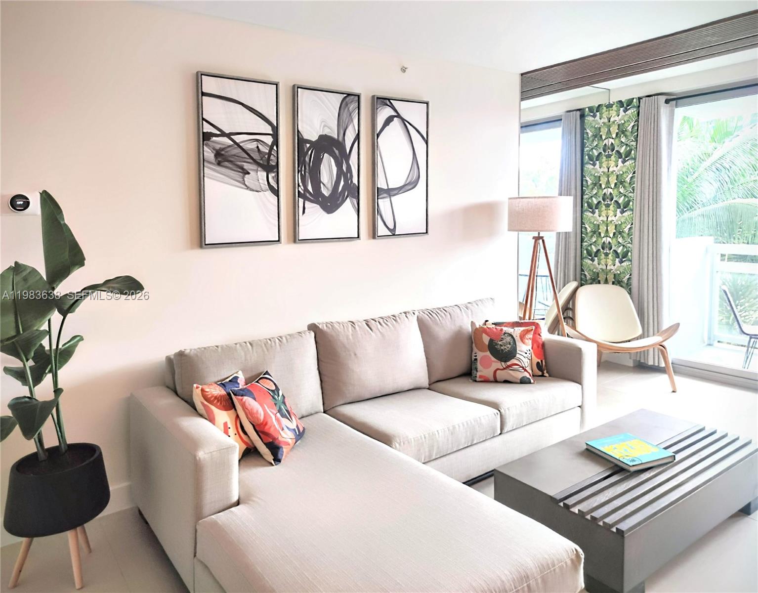 Rare turnkey 1-bedroom mid-term rental investment at Flamingo Point South Tower. Currently an active 30-day minimum furnished rental with a proven revenue history ($250-$350/night). Sold fully furnished with a transition blueprint (professional photos, vendor contacts, and proven listing copy to seamlessly launch your own profile). Unlike most units, this features RARE FULL IMPACT WINDOWS (1 of only ~3 in the entire building). Fully automated, tech-enabled interior: motorized blinds and workstation, LED lighting, Wi-Fi thermostat, Frame TV (all voice controlled), Bosch dishwasher, induction cooktop, and in-unit washer. Resort amenities: 2 bayfront pools, fitness center, and on-site dining. Step in and generate income immediately.