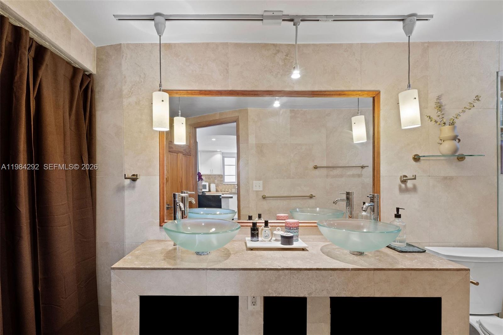 Welcome to The Boho Beach Flat, a bright and spacious corner residence in the heart of the Art Deco Historic District. Set in a quiet mid-century modern building, this serene home features upgraded hurricane-impact windows and doors for added serenity and peace of mind. Travertine floors run throughout, while the spacious open kitchen showcases a playful curved Deco ceiling detail and breakfast bar overlooking the bright living and dining areas. An additional nook provides flexible space for a home office. The large, bright bedroom includes built-in illuminated shelving, pocket French doors, and a generous walk-in closet. The oversized spa-like travertine bathroom features a double vanity and ample storage. Just three blocks to the ocean, this special unit also includes a separate storage unit and one assigned gated, covered parking space — a rare find in South Beach.