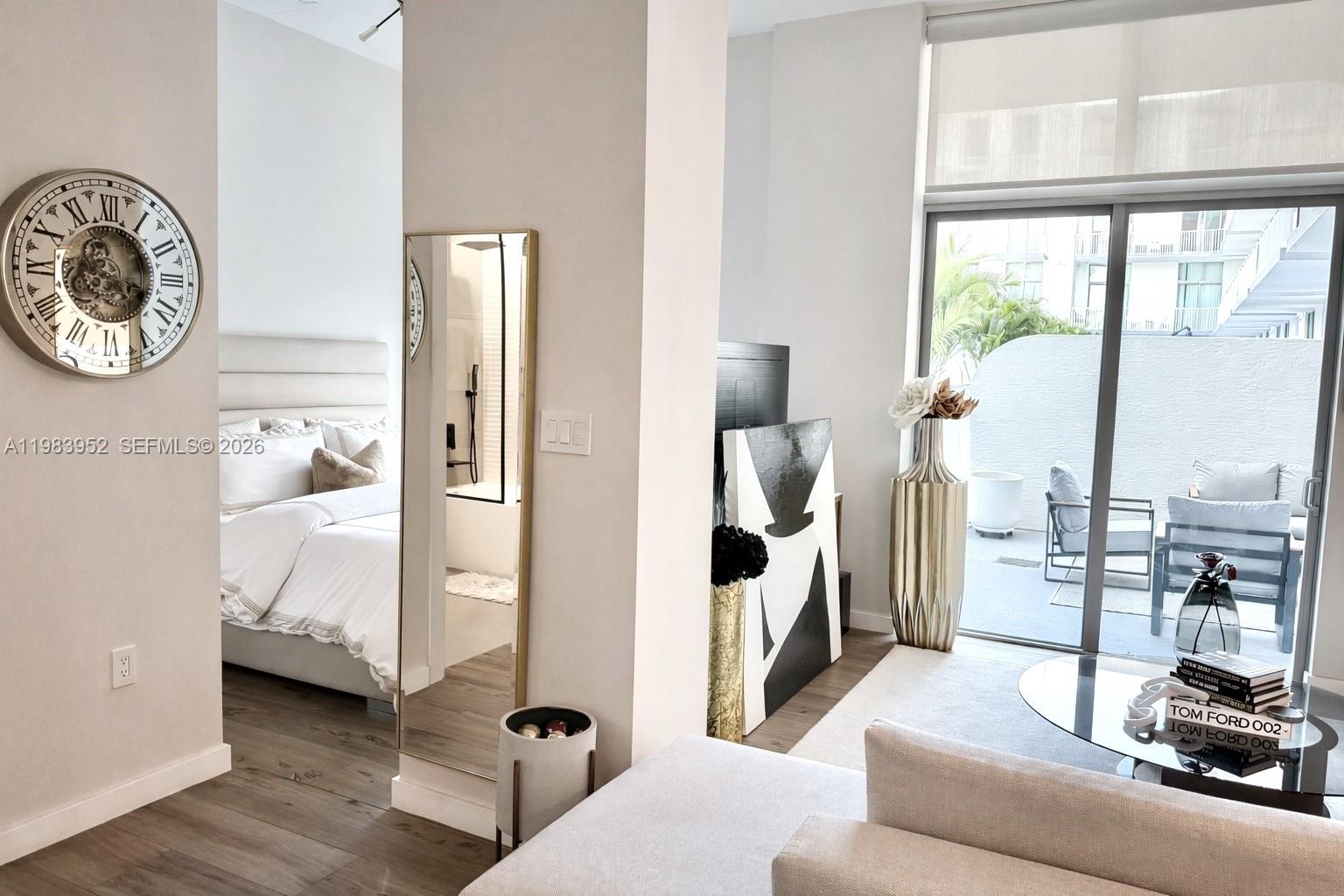 Impeccably renovated loft-style condo in the heart of Hollywood, Florida, blending sophisticated design with open-concept living. Originally configured as a two-bedroom, the interior space has been reimagined into a striking open loft with soaring 11.5-foot ceilings, creating a light-filled interior with dramatic volume. The designer kitchen anchors the living area and features a custom-built oversized island with generous storage, prep space, and seating—ideal for entertaining. Premium appliances include an induction cooktop with a custom downdraft ventilation system, double wall oven, and built-in wine cooler, maintaining clean sightlines while complementing the sleek aesthetic. Renovated bathrooms showcase refined finishes and a spa-inspired feel. Upgrades include keypad entry, motorized window blinds, soundproof flooring, and custom solid-core interior doors. Major system updates—new electrical wiring, upgraded electrical panel, and a brand-new water heater—enhance efficiency. The spacious private patio extends the living area outdoors. A rare highlight is two covered parking spaces—one deeded plus a grandfathered leased space, a valuable feature within the building. Ideally located close to Hollywood’s vibrant dining, shopping and beautiful beaches, this turnkey property offers refined living in a prime South Florida location.