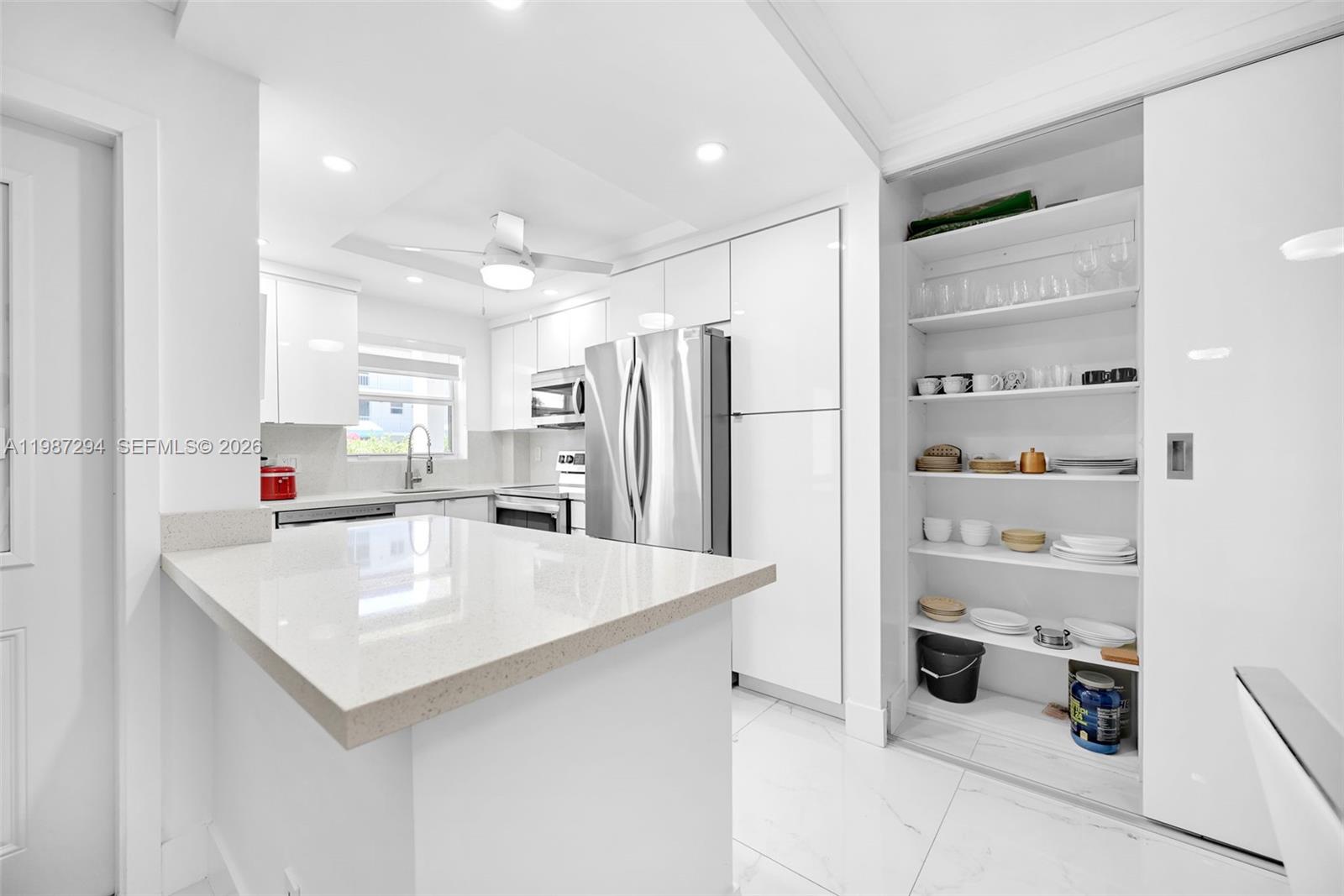 Stunning apartment, spacious and beautiful 2-bedrooms, 2 bathrooms offering 1,000 sq. ft. of comfortable living space. This bright and airy unit features a desirable open layout filled with abundant natural light, creating a warm and inviting atmosphere throughout. The updated kitchen boasts stainless steel appliances, ample cabinetry, and generous storage, making it functional and practical for everyday living. Enjoy seamless indoor-outdoor living as you unwind on the large screened-in patio overlooking with peaceful pool and garden views, your private oasis to relax and recharge. Located in the desirable Casa Paradiso, residents enjoy a variety of amenities, including sparkling community pool. private park with dock access, BBQ/picnic areas, laundry facilities, additional storage space. Prime location! Just minutes from the beach, Gulfstream Park, Aventura Mall, fine dining, shopping, and major highways, offering convenience and an exceptional South Florida lifestyle.
