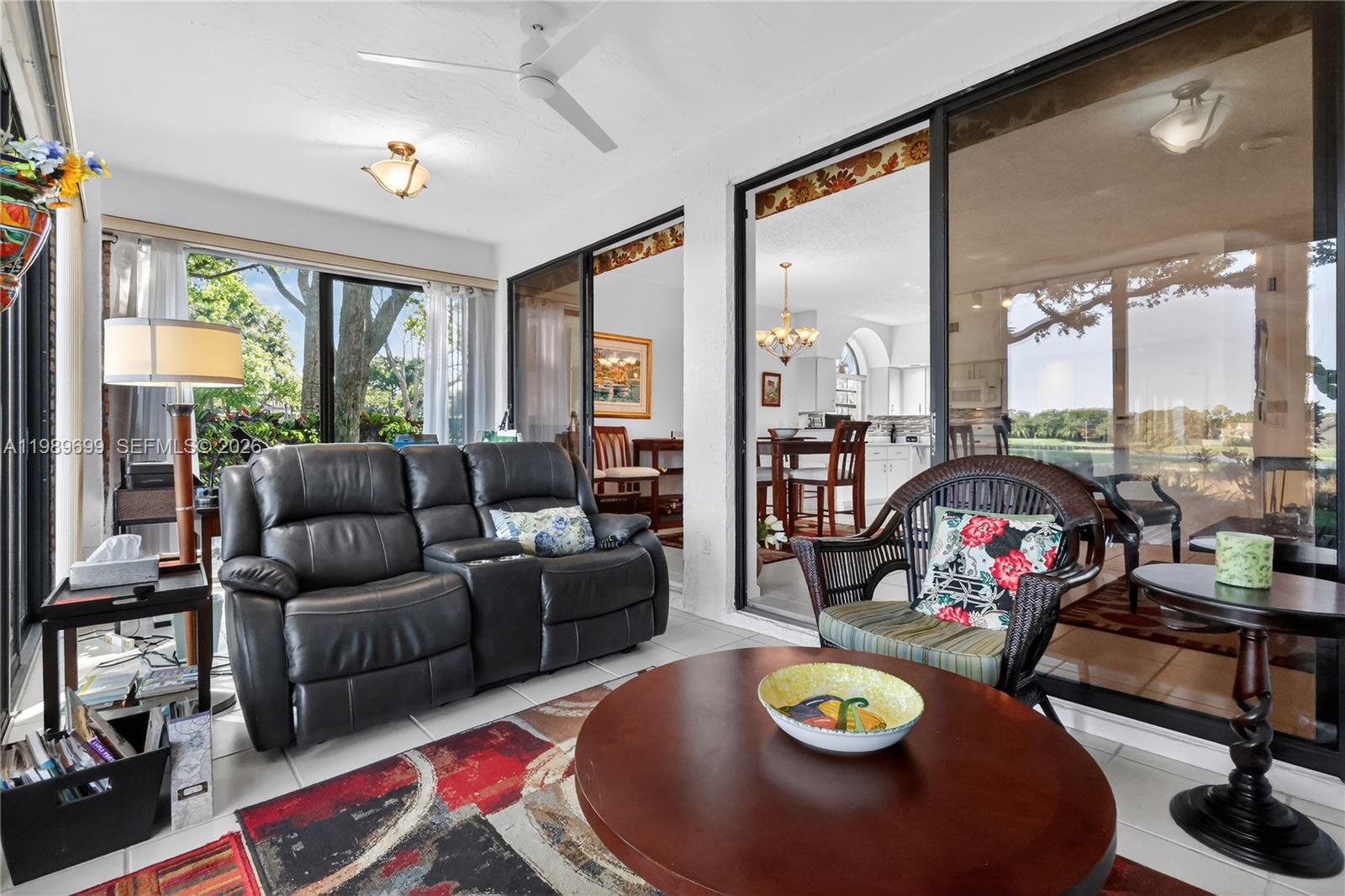 Experience panoramic golf and lake views from this rare corner residence in Aberdeen Golf & Country Club. Designed for natural light and seamless indoor-outdoor living, this home features oversized windows, elevated ceilings, and a glass-enclosed lanai that creates a year-round space to relax and enjoy the scenery. The open kitchen is positioned to capture the tranquil fairway and water views, complete with quartz countertops, white cabinetry, and a spacious breakfast bar that flows into the main living area. The primary suite offers a large walk-in closet and picturesque views. Hard flooring runs throughout with no carpet, creating a clean and low-maintenance interior. Recent updates include a brand new A/C, hot water heater, and stacked washer & dryer. First-floor access & parking directly in front of the unit add everyday convenience, with guest parking nearby. The building has also been recently painted & features a newer roof. Located within exclusive Aberdeen Golf & Country Club, a mandatory membership community, residents enjoy access to Jim Fazio-designed golf course, tennis, pickleball, resort-style pools, a state-of-the-art fitness and aquatics center, and multiple dining venues. A vibrant social calendar creates an active, connected lifestyle. Situated within an A-rated school zone & set across 1,400 acres of beautifully maintained grounds, Aberdeen offers a rare opportunity to enjoy true country club living at a compelling value in Palm Beach County.