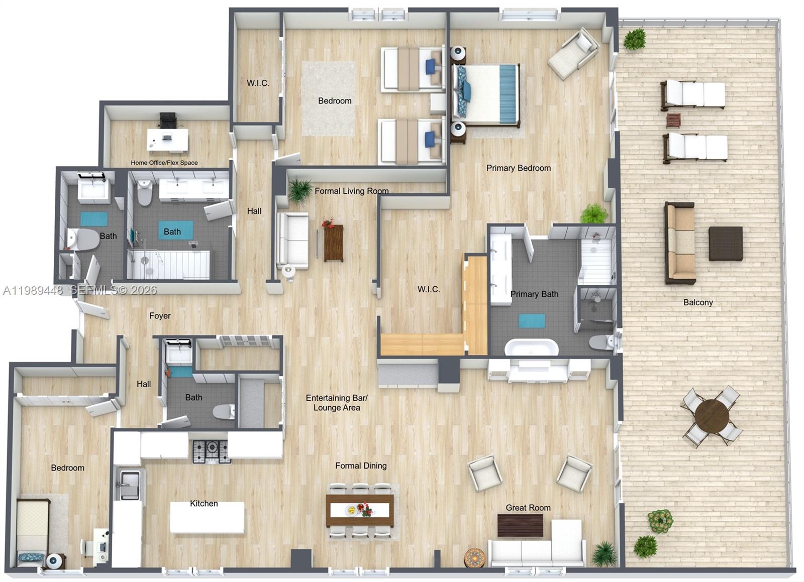 Penthouse residence offering 3 beds, 3.5 baths plus a Den/Office across 2,800+ SF of fully rebuilt electrical, plumbing, mechanical and a redesigned modern layout. Features include formal living and dining, spacious family room, and designer kitchen with leathered quartzite countertops, full backsplash, and luxury appliances. Premium finishes and high-end materials throughout. Panoramic unobstructed ocean views with rare North, South, and Intercostal exposures deliver natural sunlight from every room. A perfect blend to enjoy both an oceanfront and boating lifestyle. Expansive 950 SF private rooftop terrace which creates a seamless indoor-outdoor living. Full-service building in one of Hallandale’s most desirable location with marina/dock access, pool, spa, fitness center, tennis, 24/7 security, 2 covered parking, in-unit washer dryer, large storage, and near Aventura Mall and houses of worship.